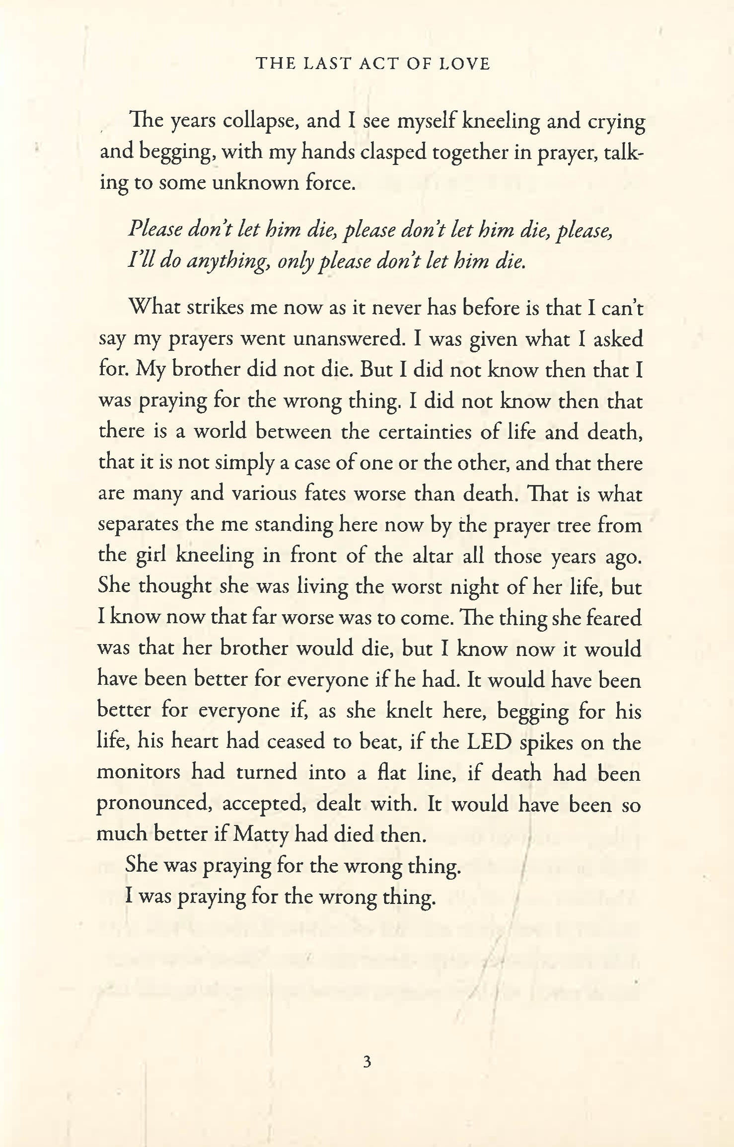 In the summer of 1990, Cathy's brother Matty was knocked down by a car on the way home from a night out. It was two weeks before his GCSE results, which turned out to be the best in his school. Sitting by his unconscious body in hospital, holding his hand and watching his heartbeat on the monitors, Cathy and her parents willed him to survive. They did not know then that there are many and various fates worse than death. This is the story of what happened to Cathy and her brother, and the unimaginable decision that she and her parents had to make eight years after the night that changed everything. It's a story for anyone who has ever watched someone suffer or lost someone they loved or lived through a painful time that left them forever changed. Told with boundless warmth and affection, The Last Act of Love by Cathy Rentzenbrink is a heartbreaking yet uplifting testament to a family's survival and the price we pay for love