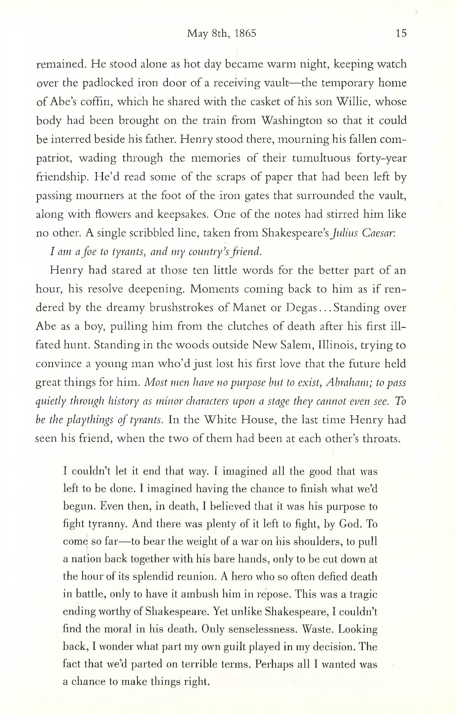 In Reconstruction-era America, vampire Henry Sturges is searching for renewed purpose in the wake of his friend Abraham Lincoln's shocking death. Henry's will be an expansive journey that first sends him to England for an unexpected encounter with Jack the Ripper, then to New York City for the birth of a new American century, the dawn of the electric era of Tesla and Edison, and the blazing disaster of the 1937 Hindenburg crash.