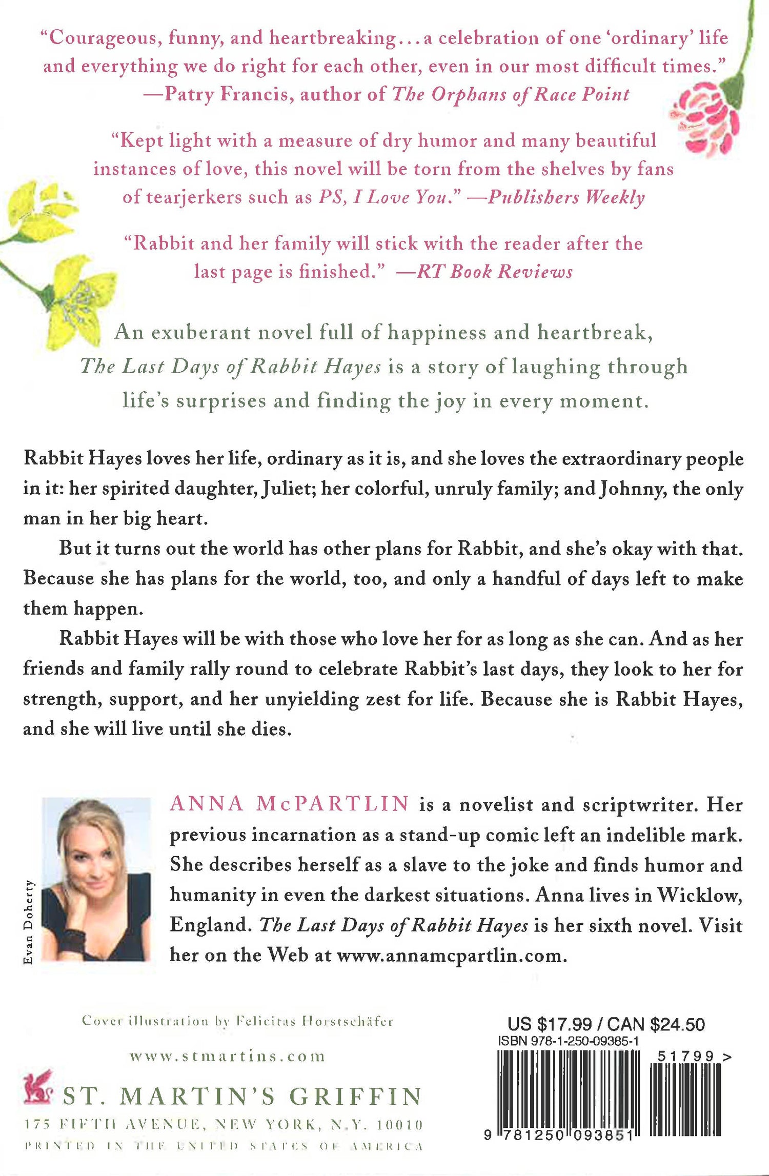 An exuberant novel full of happiness and heartbreak, Anna McPartlin's The Last Days of Rabbit Hayes is a story of laughing through life's surprises and finding the joy in every moment.