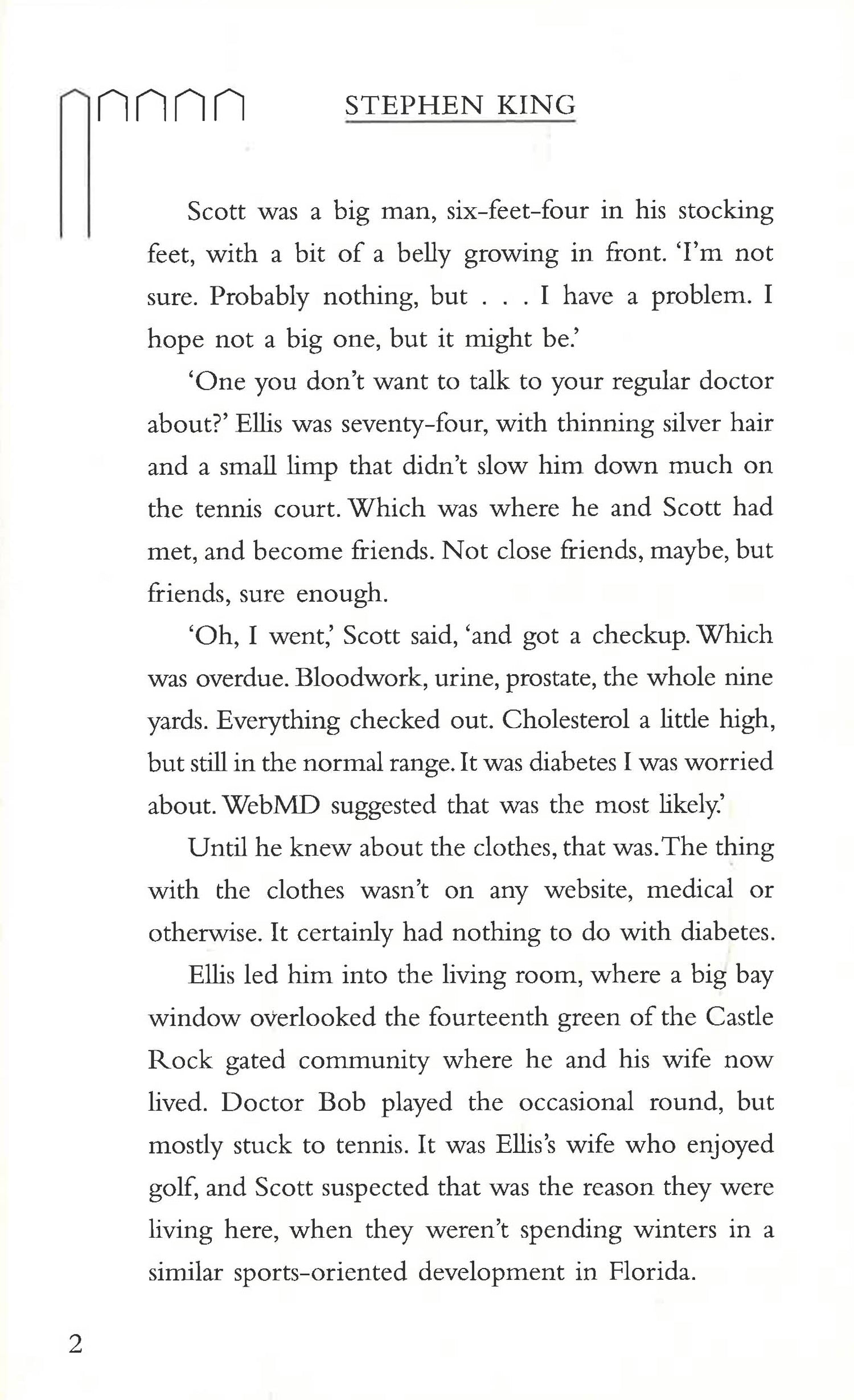 Castle Rock is a small town, where word gets around quickly. That's why Scott Carey wants to confide only in his friend Doctor Bob Ellis about his strange condition: he's losing weight, without getting thinner, and the scales register the same when he is in his clothes or out of them, however heavy they are.
