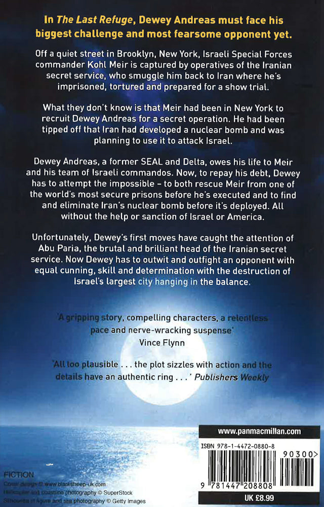 Former SEAL and Delta force operator Dewey Andreas owes his life to Kohl Meir and his team of Israeli commandos. So when Meir shows him a photo of what appears to be a nuclear device with the words 'Goodbye Tel Aviv' written in Farsi on the side Andreas realizes that repaying his debt to Meir, his team and to Israel is going to take more than a simple 'thank you'. Meir and Andreas devise a high risk, high stakes plan using leaked information from officials inside Iran and dissidents from groups outside the country to try to find and hijack the device before it is deployed. But from their very first move, they catch the attention of the brilliant and brutally tough Abu Paria, the Iranian intelligence chief, who takes Meir hostage. Andreas must face off against an opponent with equal cunning, skill, and determination while the one man who might be able to help is chained to the wall of an Iranian prison. Can Andreas prevent the nuclear bomb obliterating Israel's largest city and thereby avoid a world catastrophe . . . ?