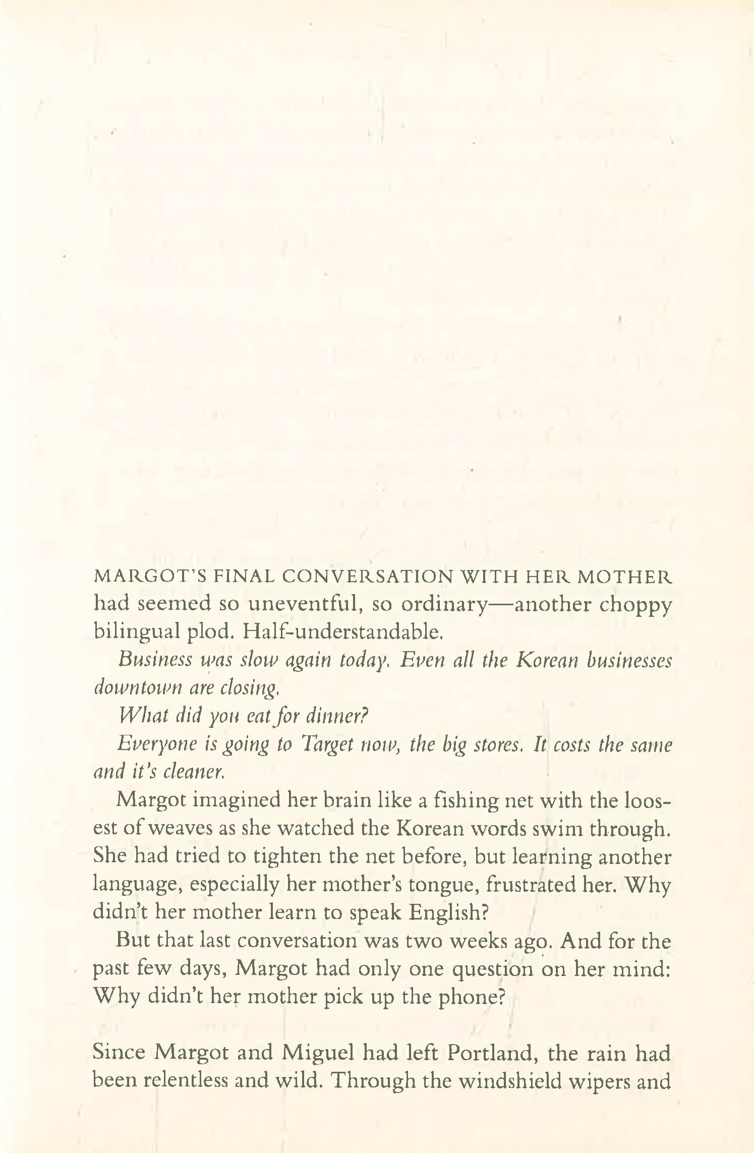 Thirty years later, Margot Lee speaks to her mother for the last time.