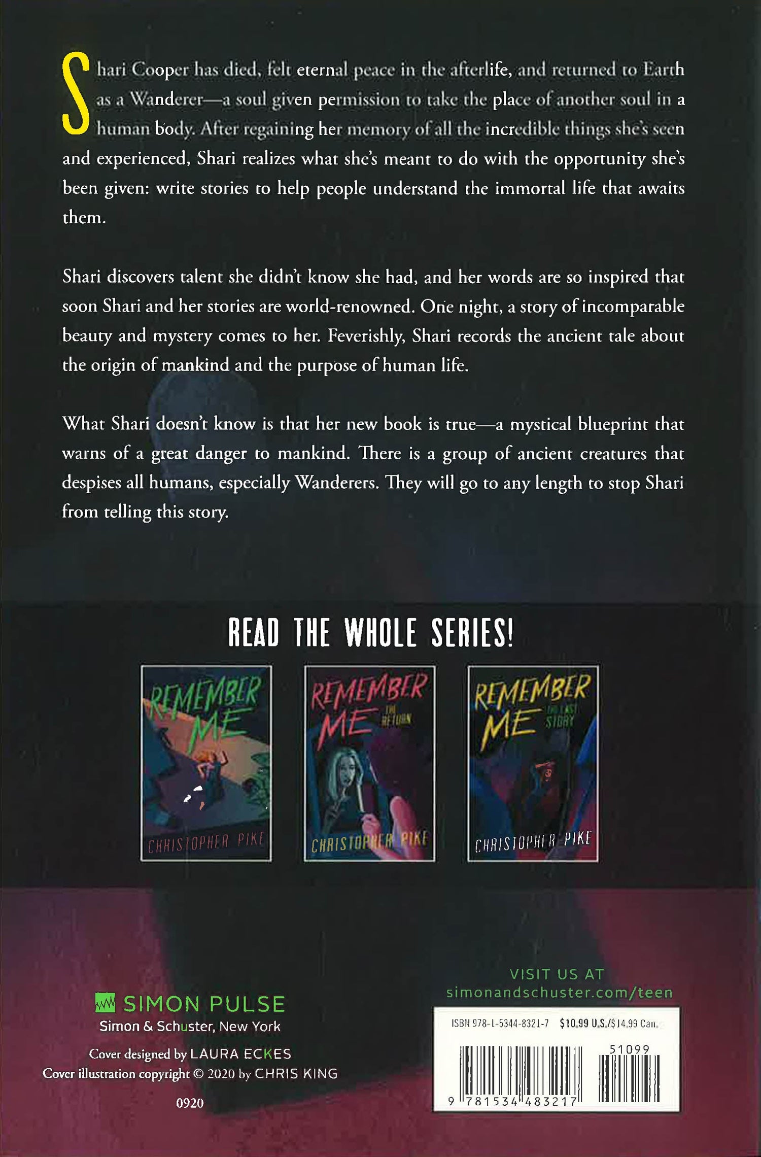 Shari Cooper has died, felt eternal peace in the afterlife, and returned to Earth as a Wanderer—a soul given permission to take the place of another soul in a human body. After regaining her memory of all the incredible things she’s seen and experienced, Shari realizes what she’s meant to do with the opportunity she’s been given: write stories to help young people understand the immortal life that awaits them.