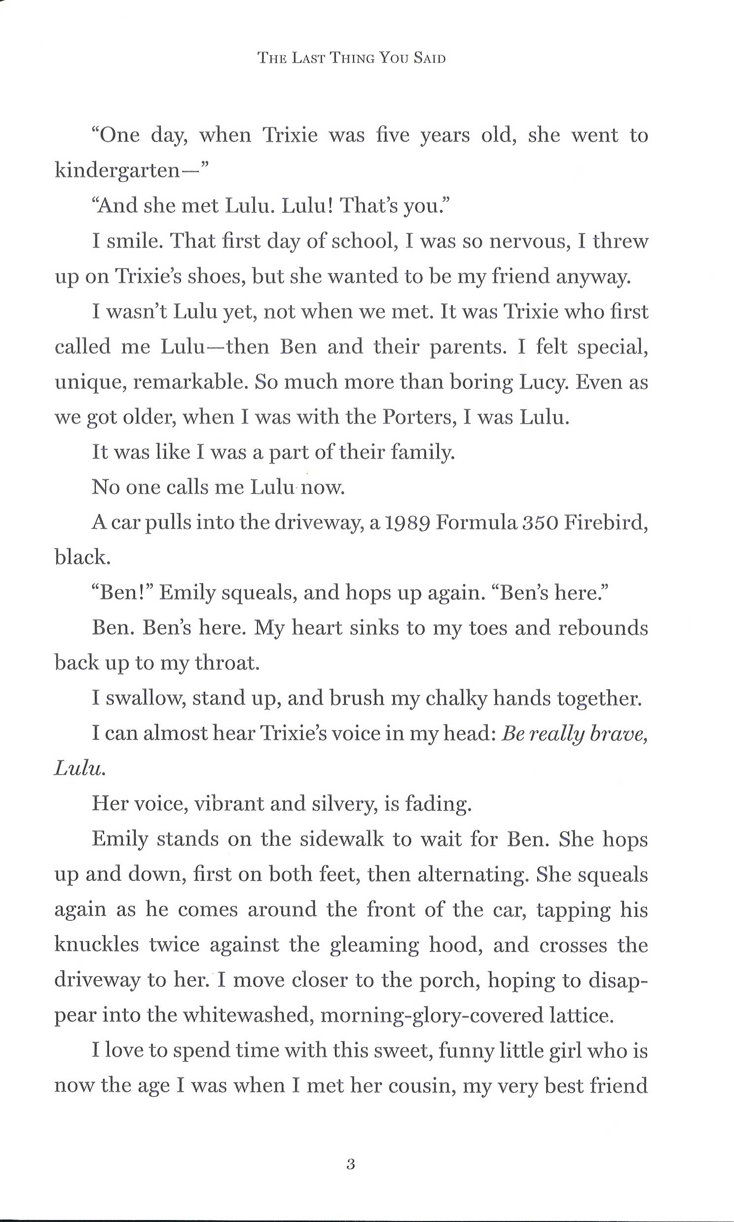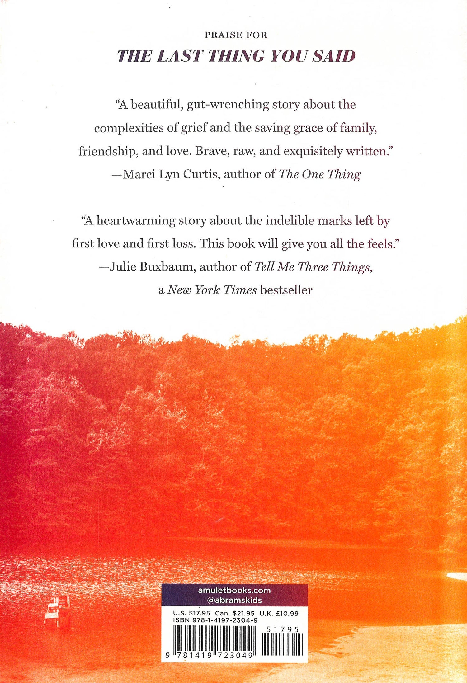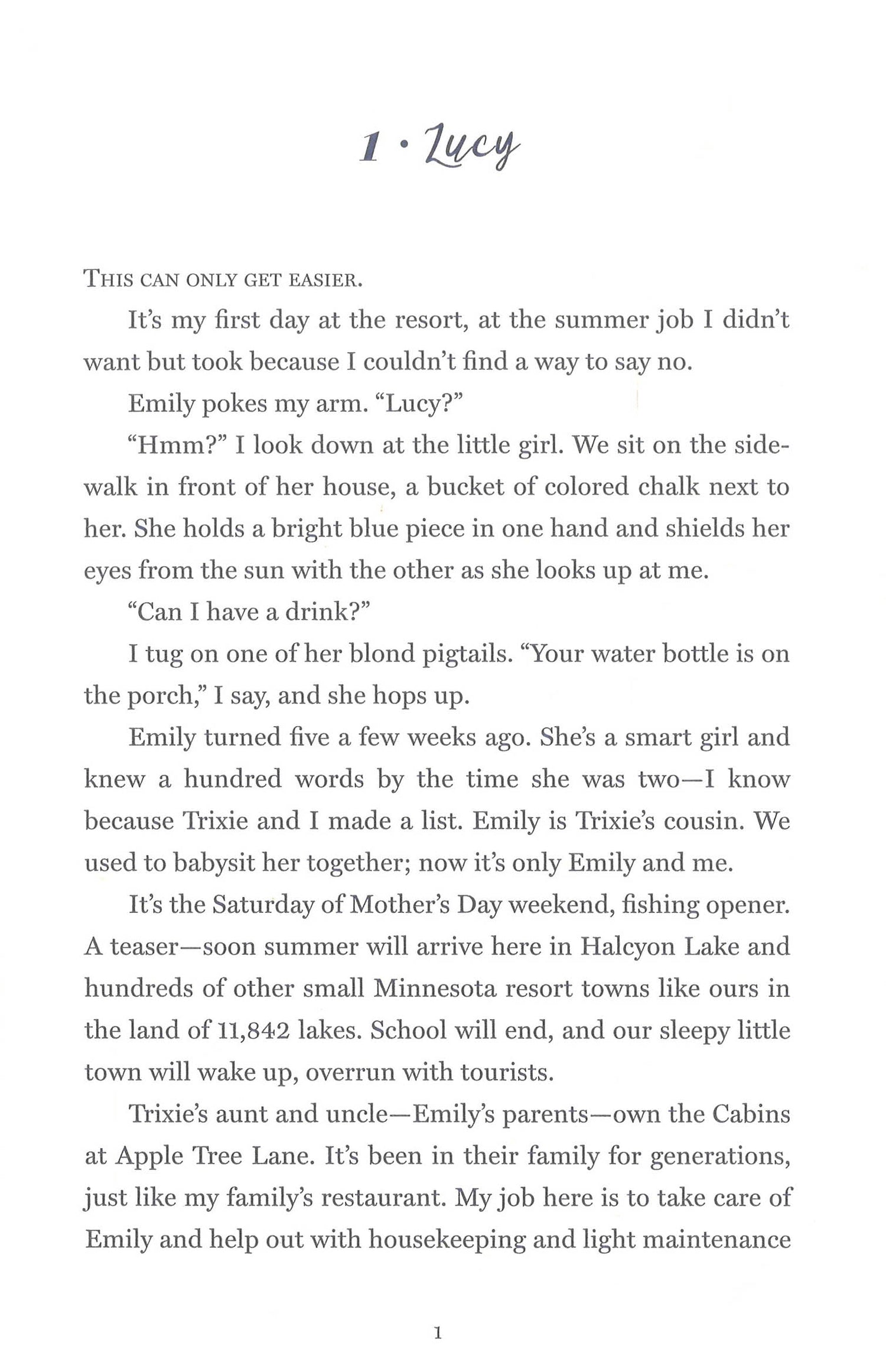 Last summer, Lucy's and Ben's lives changed in an instant. One moment, they were shyly flirting on a lake raft, finally about to admit their feelings to each other after years of yearning. In the next, Trixie Lucy's best friend and Ben's sister was gone, her heart giving out during a routine swim. And just like that, the idyllic world they knew turned upside down, and the would-be couple drifted apart, swallowed up by their grief. Now it's a year later in their small lake town, and as the anniversary of Trixie's death looms, Lucy and Ben's undeniable connection pulls them back together. They can't change what happened the day they lost Trixie, but the summer might finally bring them closer to healing and to each other.