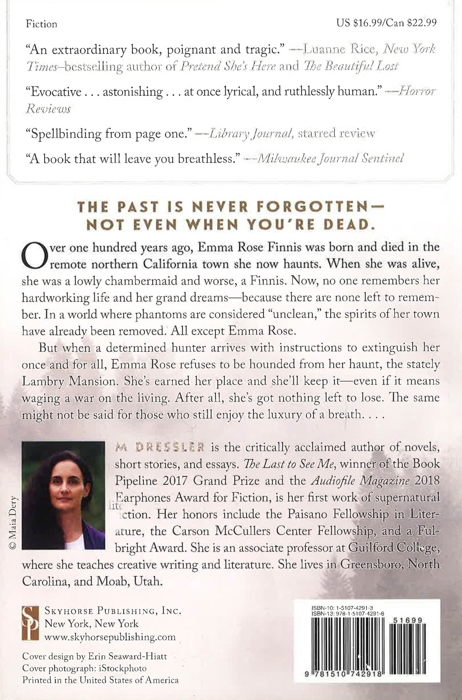 "Exquisitely written, introduced me to the inner life of a ghost and held me spellbound throughout....M Dressler has written an extraordinary book, poignant and tragic."-Luanne Rice, New York Times bestselling authorOver one hundred years ago, Emma Rose Finnis was born and died in the remote northern California town she now haunts. When she was alive, she was a lowly chambermaid and worse, a Finnis. Now, no one remembers her hardworking life and her grand dreams-because there are none left to remember. In a world where phantoms are considered "unclean," the spirits of her town have already been removed. All except Emma Rose.But when a determined hunter arrives with instructions to extinguish her once and for all, Emma Rose refuses to be hounded from her haunt, the stately Lambry Mansion. She's earned her place and she'll keep it-even if it means waging a war on the living. After all, she's got nothing left to lose. The same might not be said for those who still enjoy the luxury of a breath . . .
