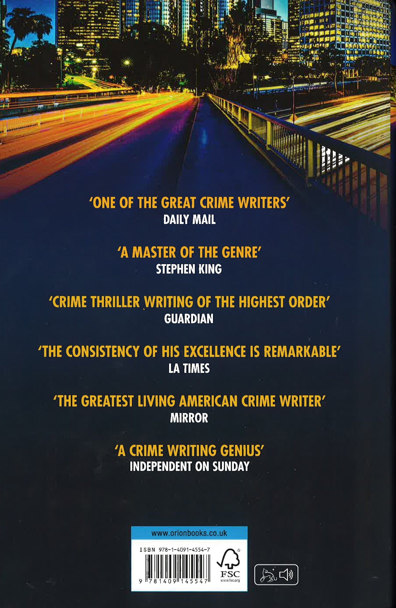 * * * * * 'The new novel from America's greatest living crime writer is a gripping thrill ride that will entrance you and keep you reading until the small hours' Daily Express 'It has been more than ten years since Connelly, one of the world's greatest crime writers, last launched a major new character. Superb storytelling - this cements Connelly's place at the very top of the crime-writing tree' Daily Mail 'Classy and clever, with a tenacious heroine' Sunday Mirror 'Connelly achieves an enormous amount in these pages: he creates a new character who immediately leaps into life; and controls a complex, fast-paced plot full of surprises' Evening Standard 'The Late Show introduces a terrific female character: Detective Renee Ballard.