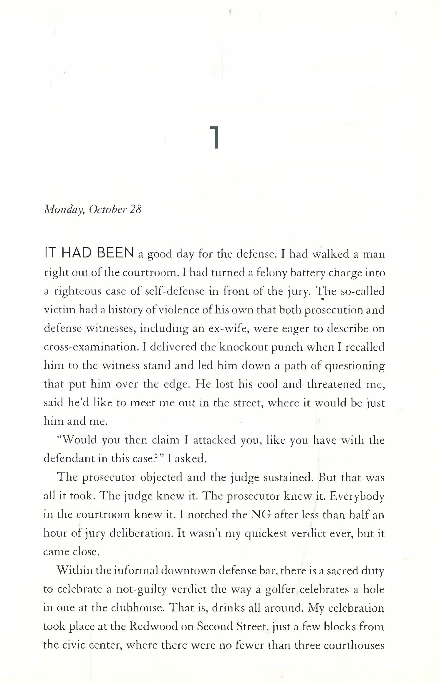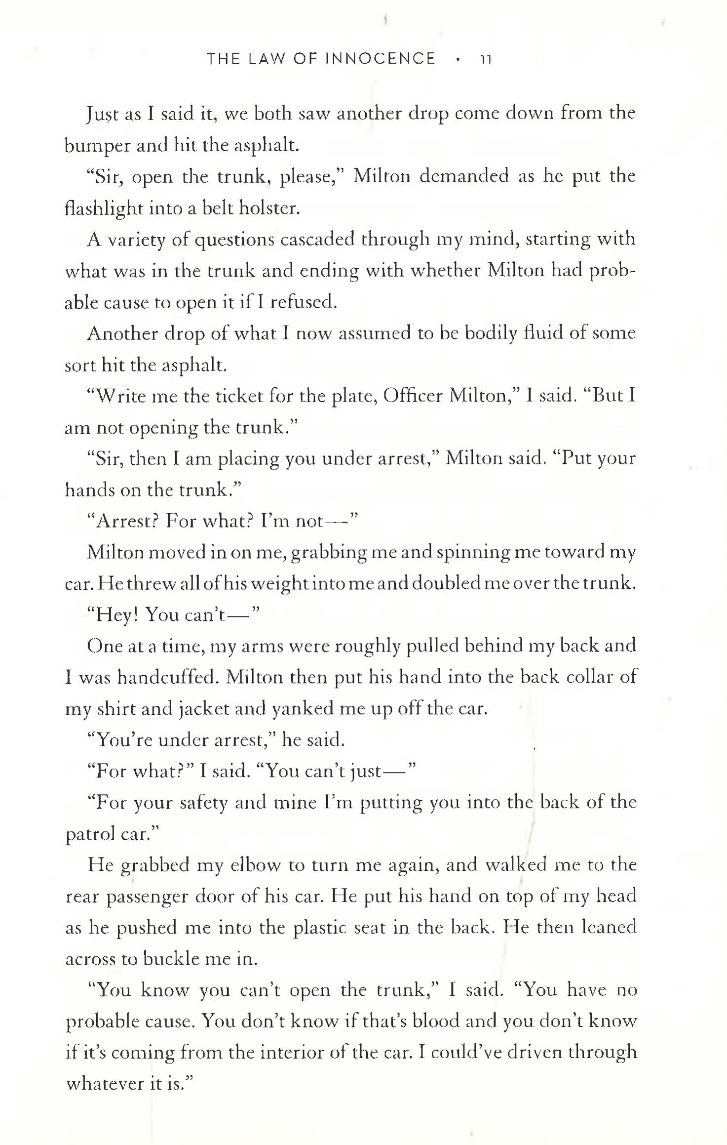 Even if he can obtain a not-guilty verdict, Mickey understands that it won't be enough. In order to be truly exonerated, he must find out who really committed the murder and why. That is the law of innocence.