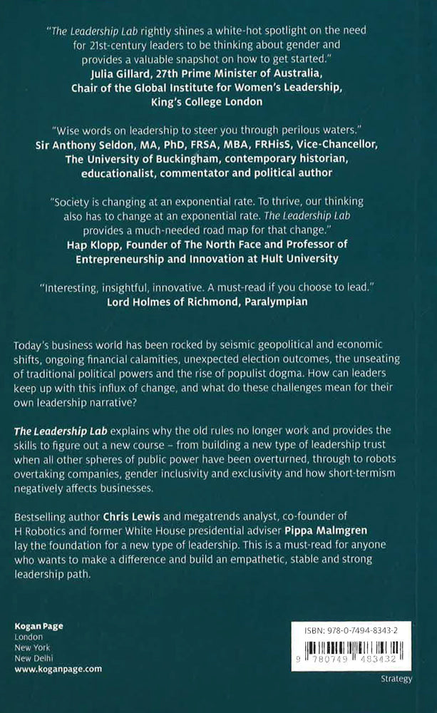 FINALIST: American Book Fest Best Book Award 2020 - Business: Management & Leadership WINNER: Independent Press Award 2020 - Leadership Category WINNER: NYC Big Book Award 2019 - Business General Category WINNER: Business Book Awards 2019 - Business Book of the Year How can today's business leaders keep up with seismic geopolitical and economic shifts that include Brexit, inflation and the unseating of traditional political powers, and what do these mean for their own leadership narratives? In The Leadership Lab, bestselling author Chris Lewis and superstar megatrends analyst Dr Pippa Malmgren help you lead your team through this change successfully. Covering everything from how to build a new type of leadership trust when other spheres of public power have been overturned, to robots overtaking companies and worldwide indebtedness affecting business, this book explains not only why the old rules no longer apply, but also how to blaze a trail in this new world order and be the best leader you can be. The Leadership Lab includes exclusive interviews with top executives grappling with the new world order and discusses what key global trends keep them awake at night and how they respond to them. It is a must-read for aspiring leaders and C-level executives seeking to develop a real intuition when it comes to dealing with the global currents disrupting business and how to build an empathetic, credible, stable and strong leadership path.