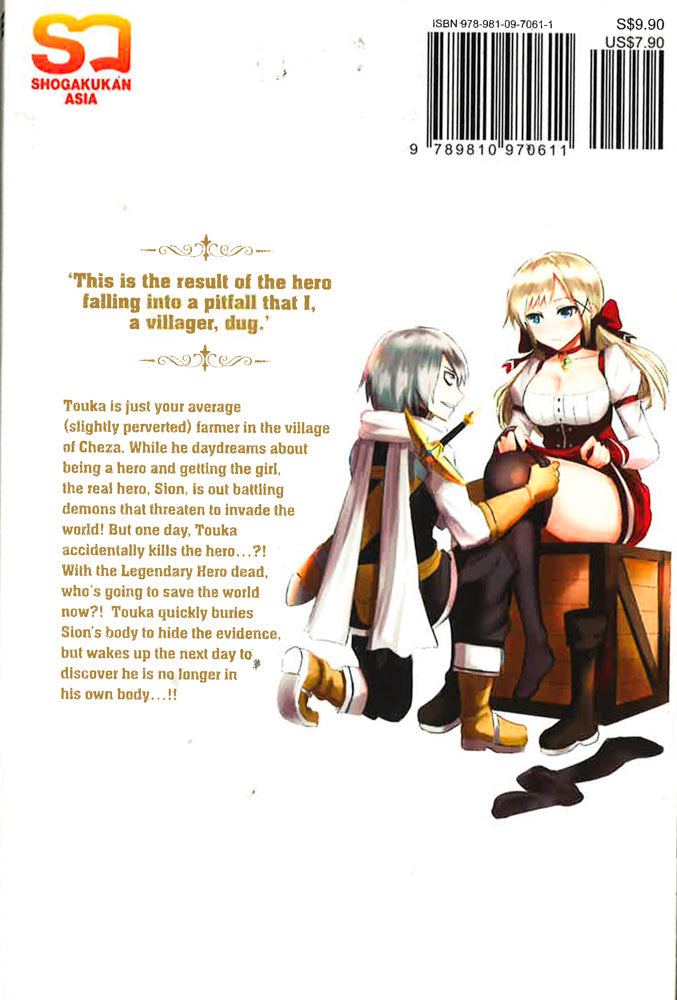 Touka is just your average (slightly perverted) farmer in the village of Cheza. While he daydreams about being a hero and getting the girl, the real hero, Sion, is out battling demons that threaten to invade the world! But one day, Touka accidentally kills the hero…?! With the Legendary Hero dead, who’s going to save the world now?! Touka quickly buries Sion’s body to hide the evidence, but wakes up the next day to discover he is no longer in his own body…!!