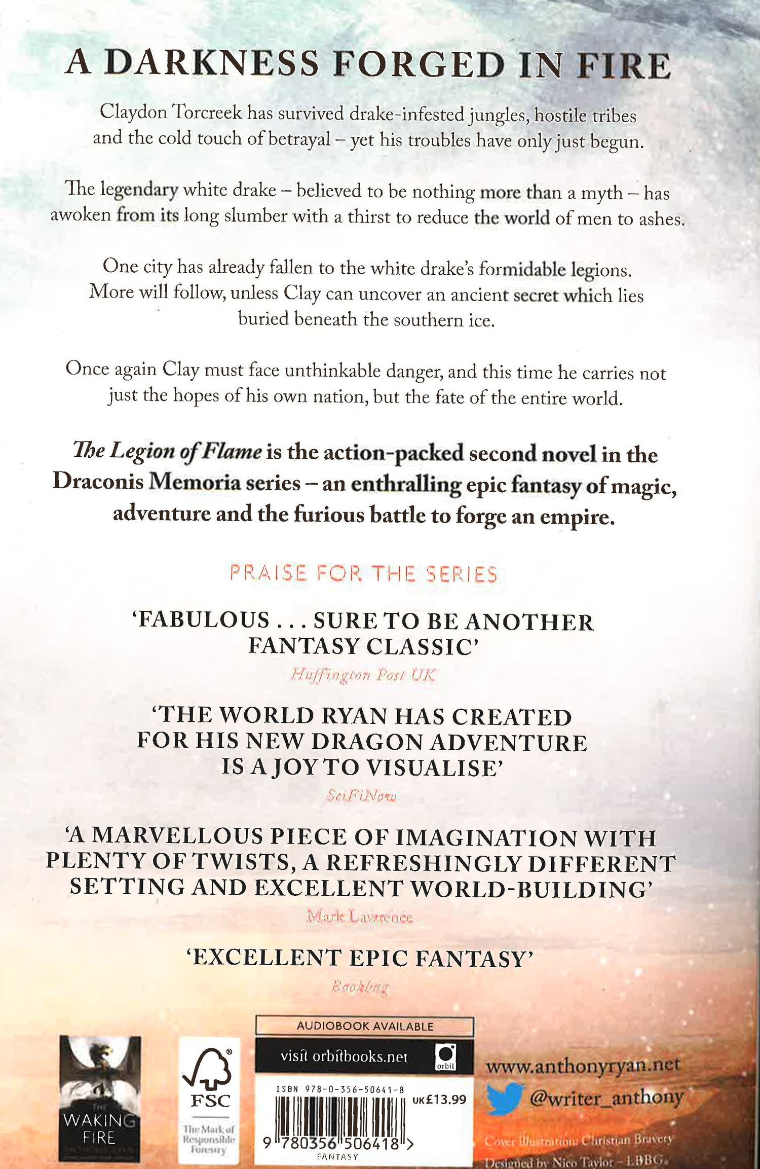 International bestseller Anthony Ryan returns with The Legion of Flame, the action-packed new novel in his Draconis Memoria series - an enthralling epic fantasy of magic, adventure and the furious battle to forge an empire Claydon Torcreek has survived drake-infested jungles, hordes of savages and the ice-cold touch of betrayal - all in search of a myth, the one thing that might just secure his nation's future.Instead he found a nightmare.For the legendary white drake has awoken, with a terrible hunger to enslave humanity and remake the world in its own image. Already its armies are gathering, eager to do their new master's bidding.Clay must undertake another perilous journey, this time to the far south, where secrets lie buried beneath the ice. Secrets that might just give humanity a fighting chance - if he can find them. International bestseller Anthony Ryan returns with The Legion of Flame, the action-packed new novel in his Draconis Memoria series - an enthralling epic fantasy of magic, adventure and the furious battle to forge an empire.