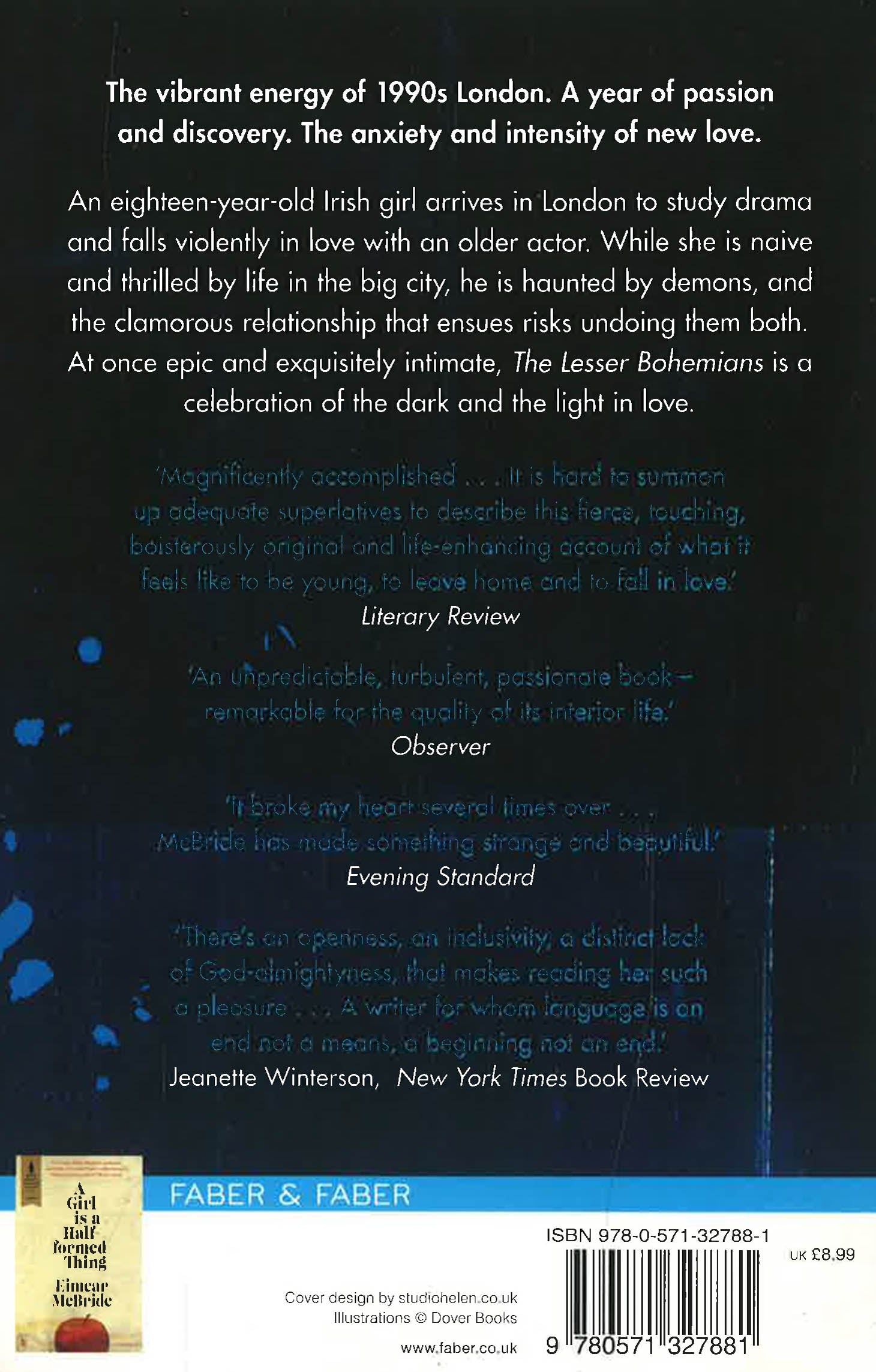 An eighteen-year-old Irish girl arrives in London to study drama and falls violently in love with an older actor. While she is naive and thrilled by life in the big city, he is haunted by demons, and the clamorous relationship that ensues risks undoing them both. At once epic and exquisitely intimate, The Lesser Bohemians is a celebration of the dark and the light in love.
