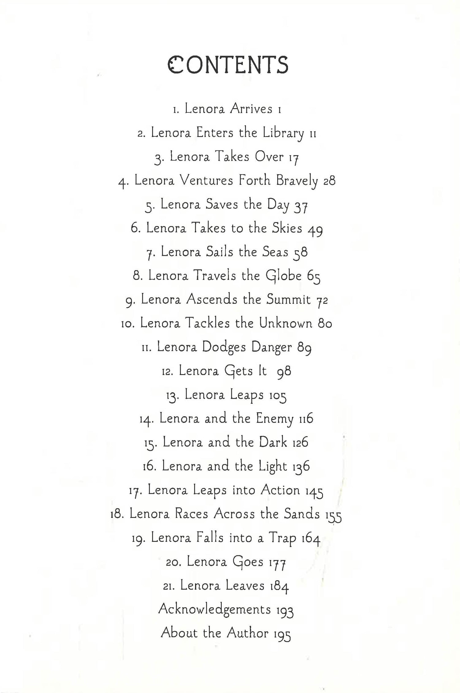 With her parents off traveling the globe, Lenora is bored, bored, bored - until she discovers a secret doorway into the ultimate library. Maze like and reality-bending, the library contains all the universe's wisdom. Every book ever written, and every fact ever known, can be found within its walls. And Lenora becomes its newly appointed Fourth Assistant Apprentice Librarian. She rockets to the stars, travels to a future filled with robots, and faces down a dark nothingness that wants to destroy all knowledge. To save the library, Lenora will have to test her limits and uncover secrets hidden among its shelves.