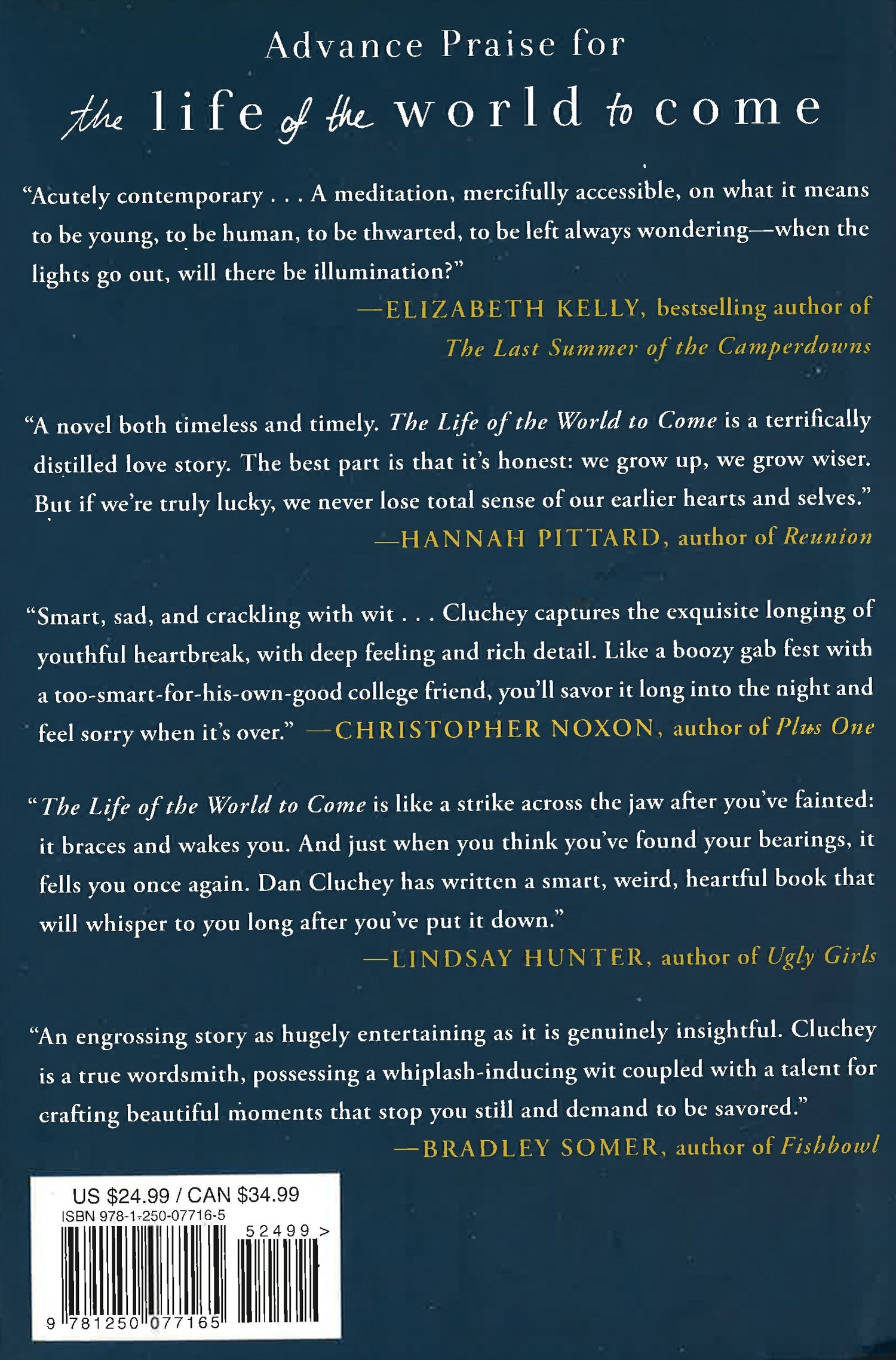 Leo Brice is dead, in a sense (not the traditional one). When the neurotic law student meets his cosmic match in Fiona Haeberle, an impulsive spirit and burgeoning soap star, all seems well—the two fall fast in love, and spend three years navigating their twenties in wide-eyed wonder. But once the fantastical woman who had defined his future bolts to pursue a fantasy life of her own, Leo is forced to come to terms with a reality that more closely resembles an epilogue than the story he’d hoped it might be. Now a junior death row advocate, Leo immerses himself in the esoteric world of his condemned client, a born-again Georgia inmate named Michael Tiegs. As both men become consumed by the question of an afterlife—and as Leo becomes increasingly confused by his own future and past—Tiegs’ fate hangs in the balance. Leaning on his friends and grappling with his memories, Leo must try to save a client who may not want to be saved after all, even as he struggles to confront the prospect of his own mortality. At once obsessively readable, philosophically probing, and verbally acrobatic, The Life of the World to Come announces Dan Cluchey as a fresh new voice in fiction.