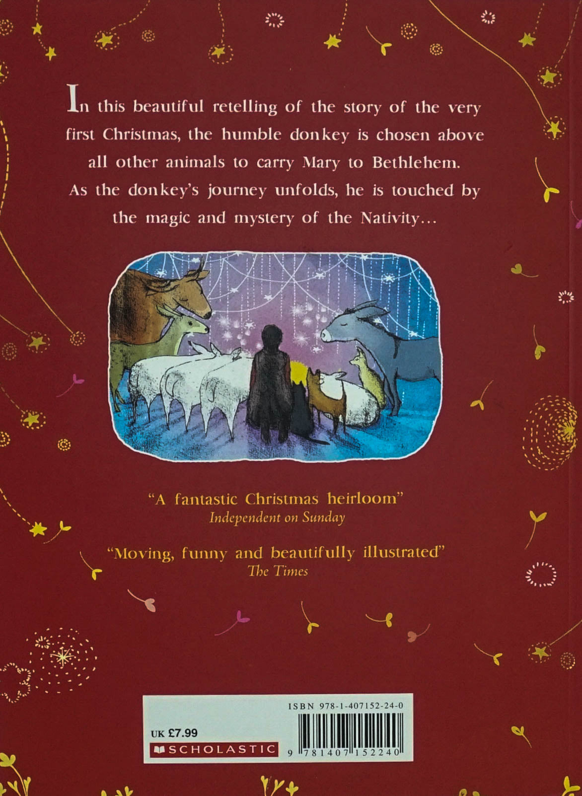 In this enchanting retelling of the Nativity by Jeanette Winterson, the Christmas story is reborn with sparkles of originality, humour and warmth. The humble donkey is chosen above all other animals to carry Mary to Bethlehem. As his journey unfolds, he is touched by the magic and mystery of the Nativity. Beautifully illustrated throughout, this Christmas modern classic will be treasured for years to come.