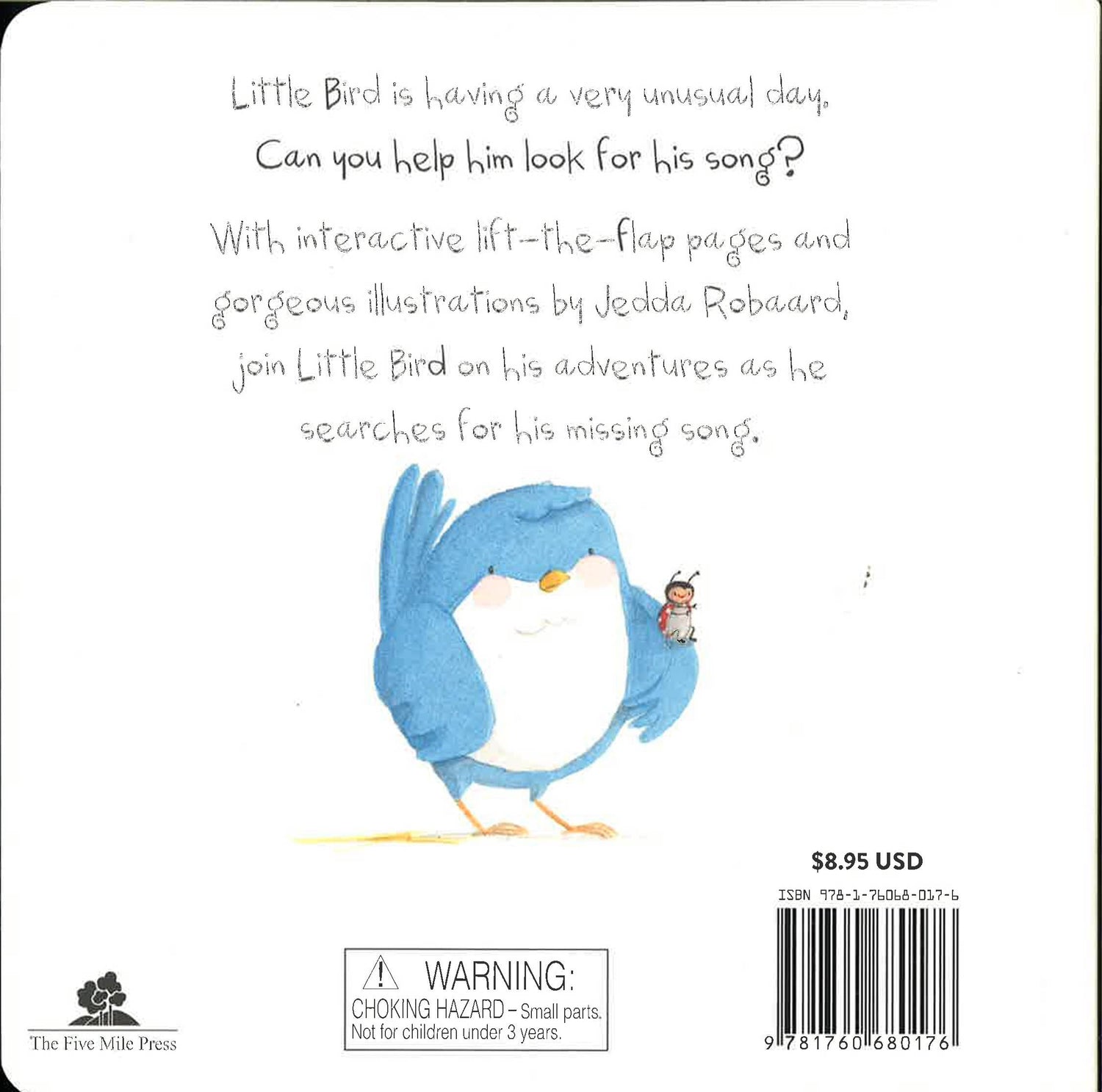 Little Bird is having a very unusual day. Can you help him look for his song? With interactive lift-the-flap pages and gorgeous illustrations by Jedda Robaard, join Little Bird on his adventures as he searches for his missing song. NOTE: Special Buy books are brand new books printed specifically for Book Outlet. Unlike our Bargain Books, these titles have no line or dot on the edge. For more information please refer to the information page Our Product. Due to many publishers not providing a Canadian list price the Canadian list price shown is an estimation based upon the US list price multiplied by the current exchange rate.