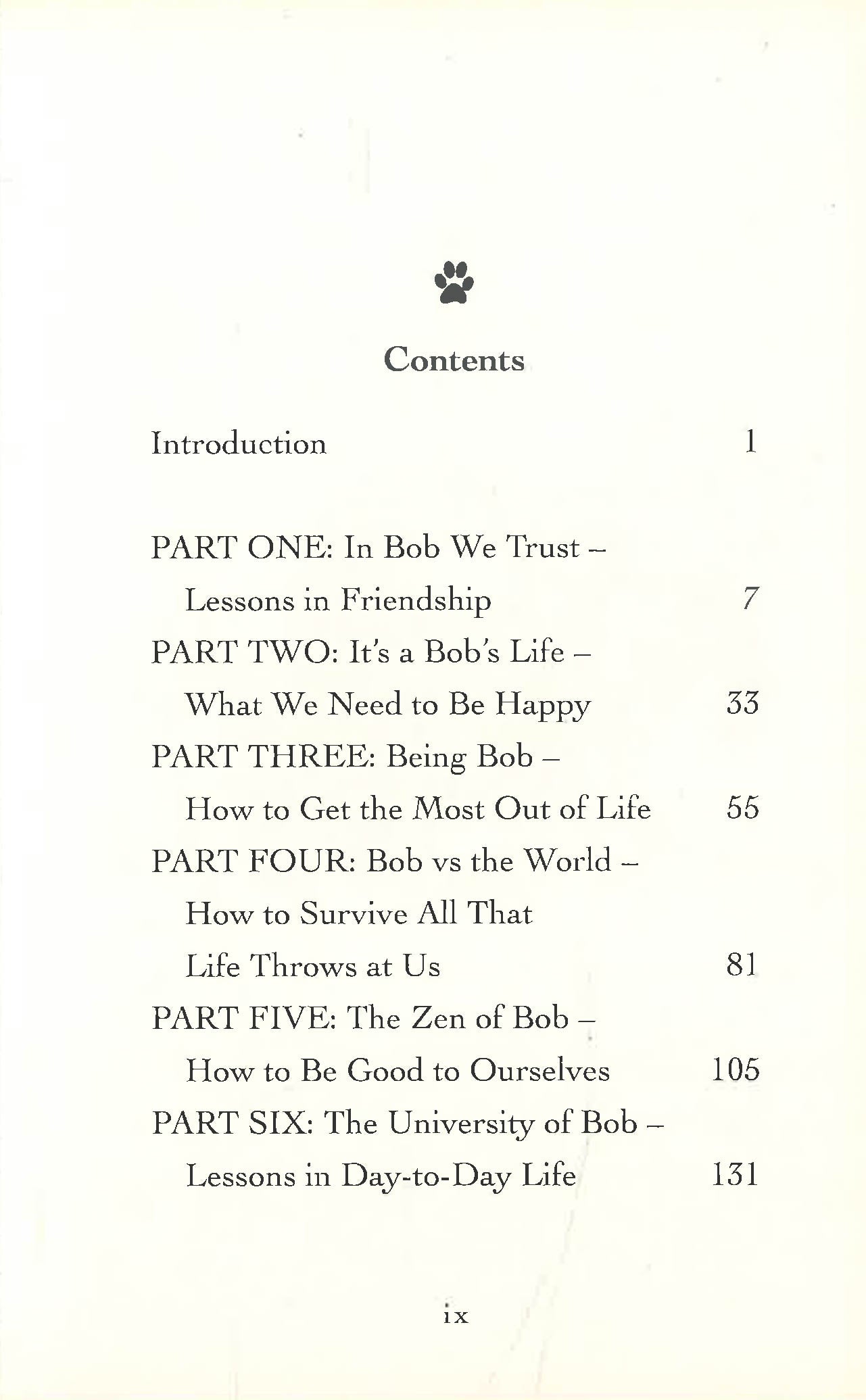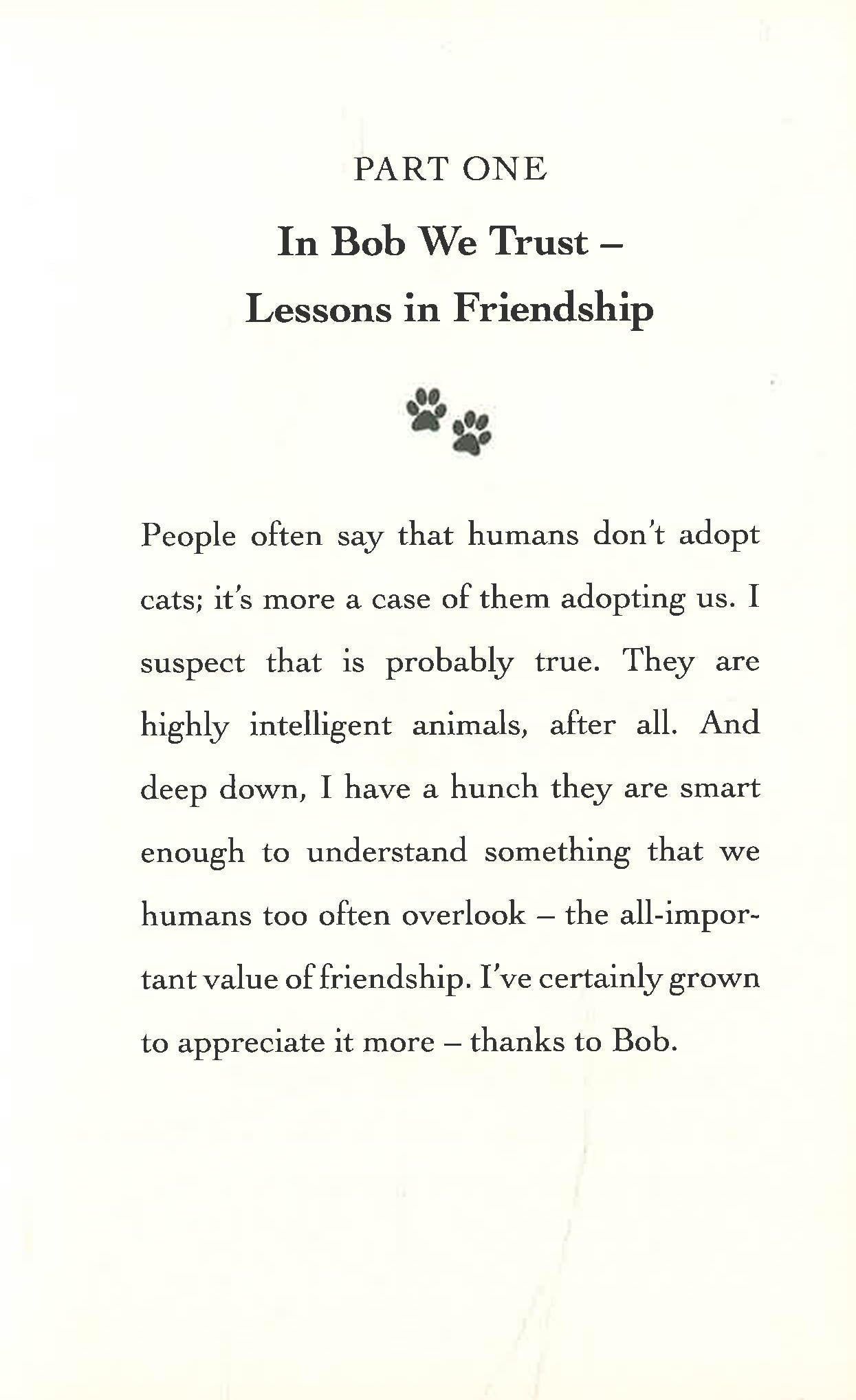 'One thing I've known about Bob from the very beginning is that he possesses a wisdom that is unusual, even in cats. In the decade since we met he's grown even wiser in my eyes. This book is a collection of the insights I've gained during my years with Bob.'