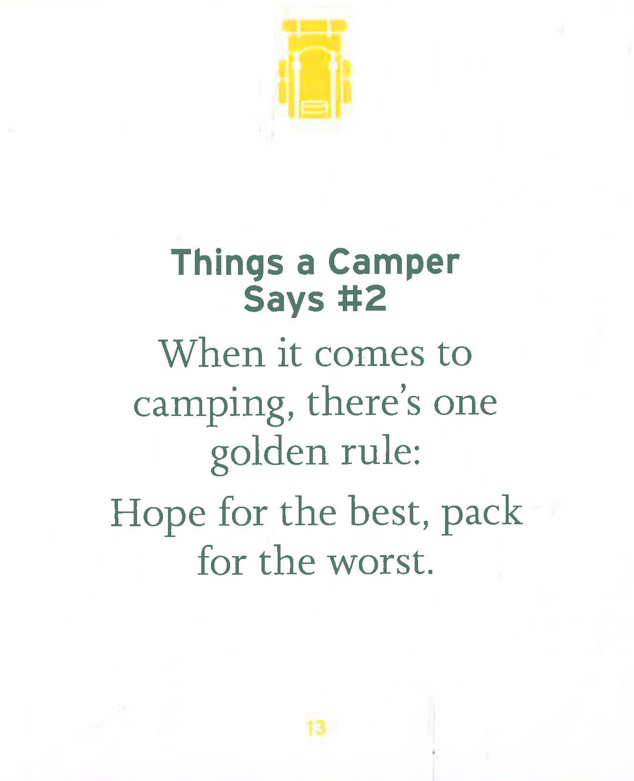 A celebration of everything camping-related, full of facts and stats, quips and tips, and quotes and notes you'll need to survive and thrive in the wild, plus ideas for places to visit and things to do.