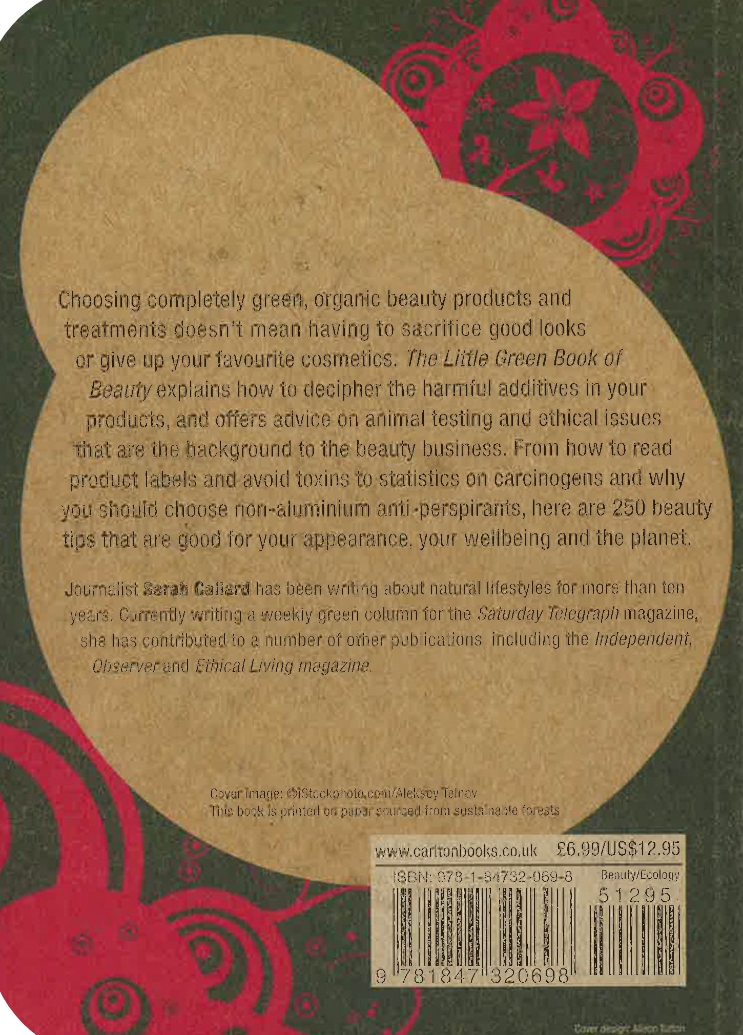 One of four titles in the "Little Green Book" series, here you will learn how to make choices that affect not only your own life but the planet as a whole. Containing 250 tips on cosmetics, grooming products and treatments, "The Little Green Book of Beauty" offers tips on packaging, ingredients, organics, toxins, animal testing and ethical issues. From how to read product labels and avoid toxins to statistics on carcinogens and why choose non-aluminium anti-perspirants, here are tips that are necessary for your wellbeing as well as the planets.