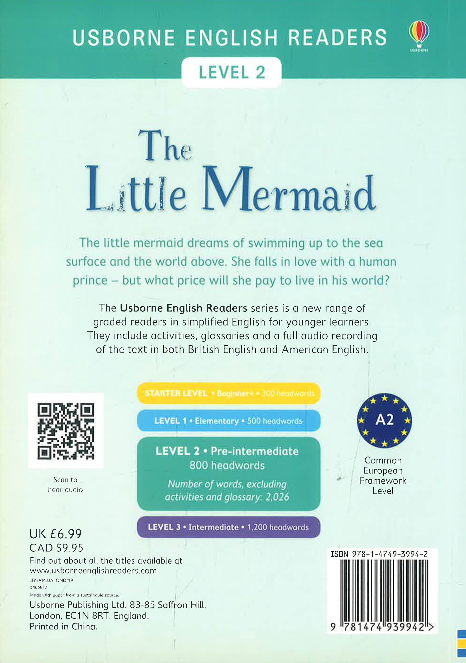 The little mermaid dreams of swimming up to the sea surface and the world above. She falls in love with a human prince - but what price will she pay to live in his world? Includes a word list, 5 pages of activities and free online audio (British English and American English). 800 headwords, 2,025 words
