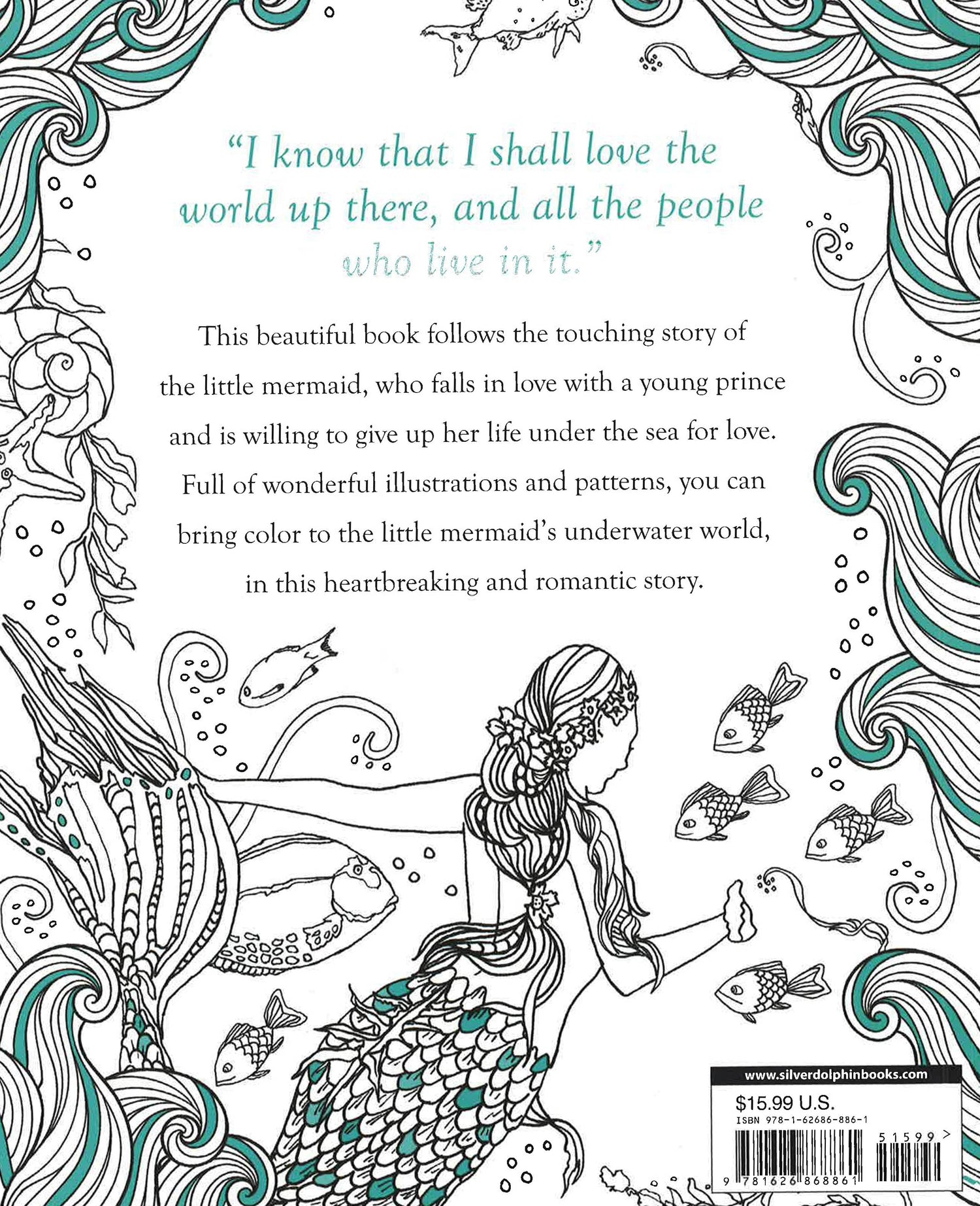 Full of wonderful pictures and patterns, you can bring color to the Little Mermaid's underwater world, in this heart-breaking and romantic story. Dive into this book and bring color to the wonderful, magical, undersea world of the Little Mermaid and her sisters. This beautiful book, based on the original story by Hans Christian Andersen, follows the touching tale of the Little Mermaid who falls in love with a young land-loving prince. Full of wonderful pictures and patterns, budding artists can bring life to the Little Mermaid's underwater world in this heart-breaking and romantic story.