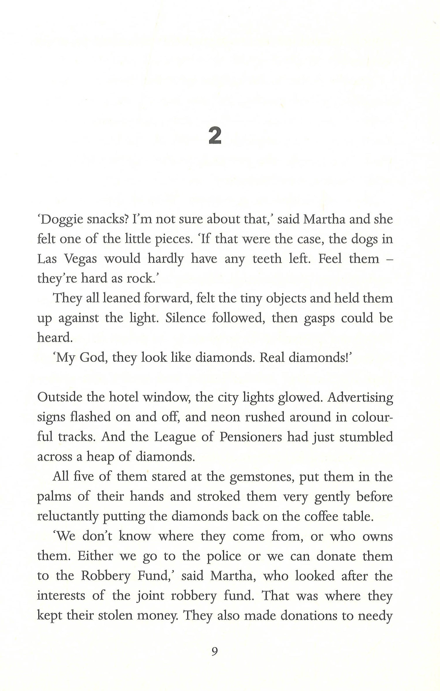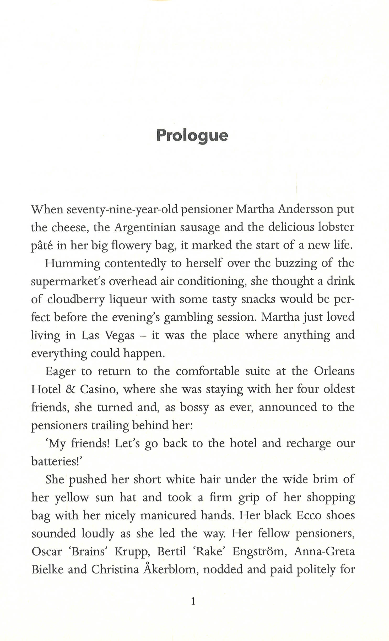 Martha Andersson and the League of Pensioners have left behind their dreary old-age home in Stockholm and are headed for the bright lights of Las Vegas. This is their chance at a new lease on life, and they plan to make the most of it. But before long they are up to their old tricks, plotting to outwit the security system at one of the city's biggest casinos. However, they aren’t the only ones planning to steal bucketloads of cash, and soon they find themselves pitted against a gang of dangerous criminals.Can the group of elderly friends work together to outsmart the younger robbers and get away with their biggest heist yet? Or will this job be a step too far for the League of Pensioners?