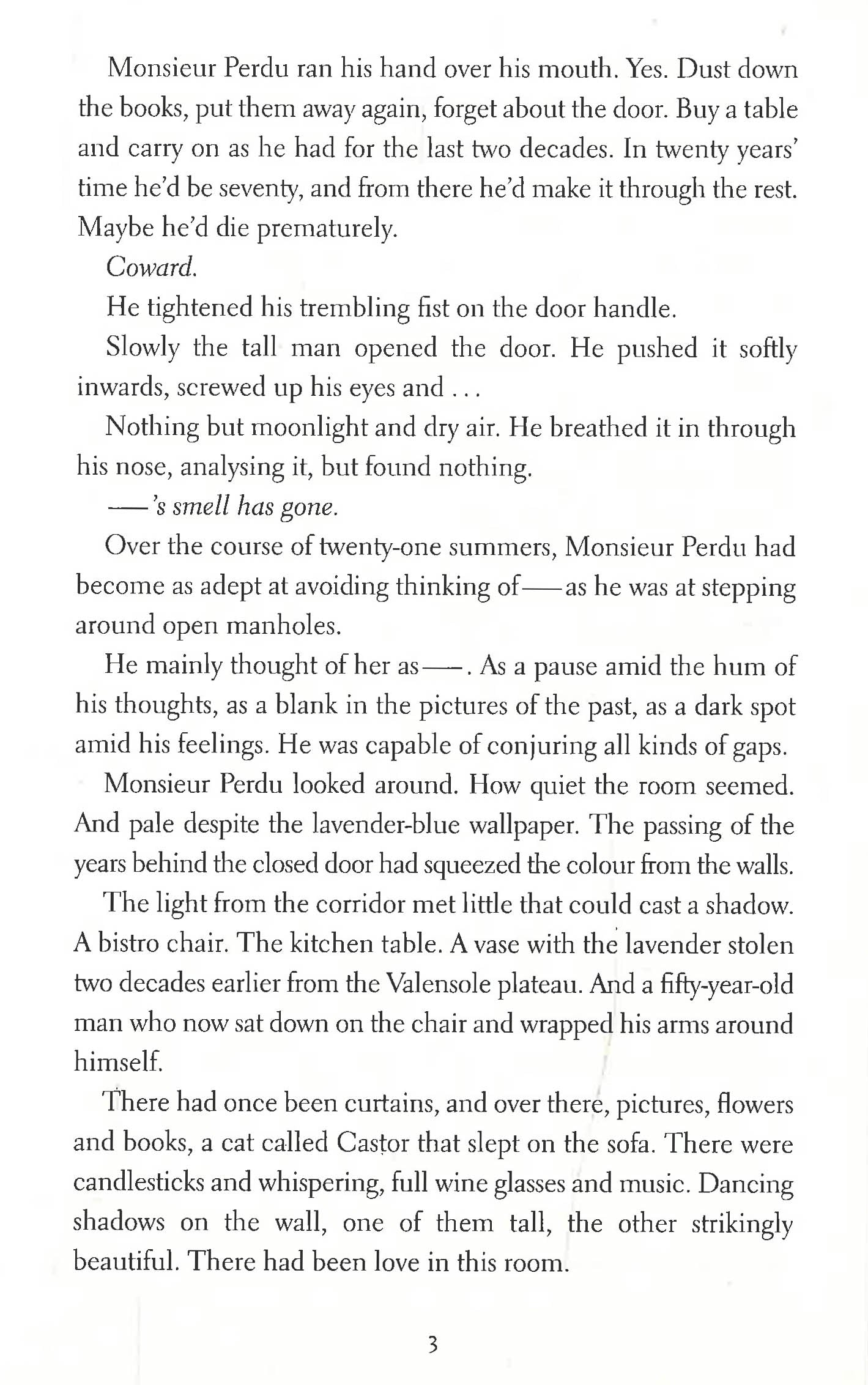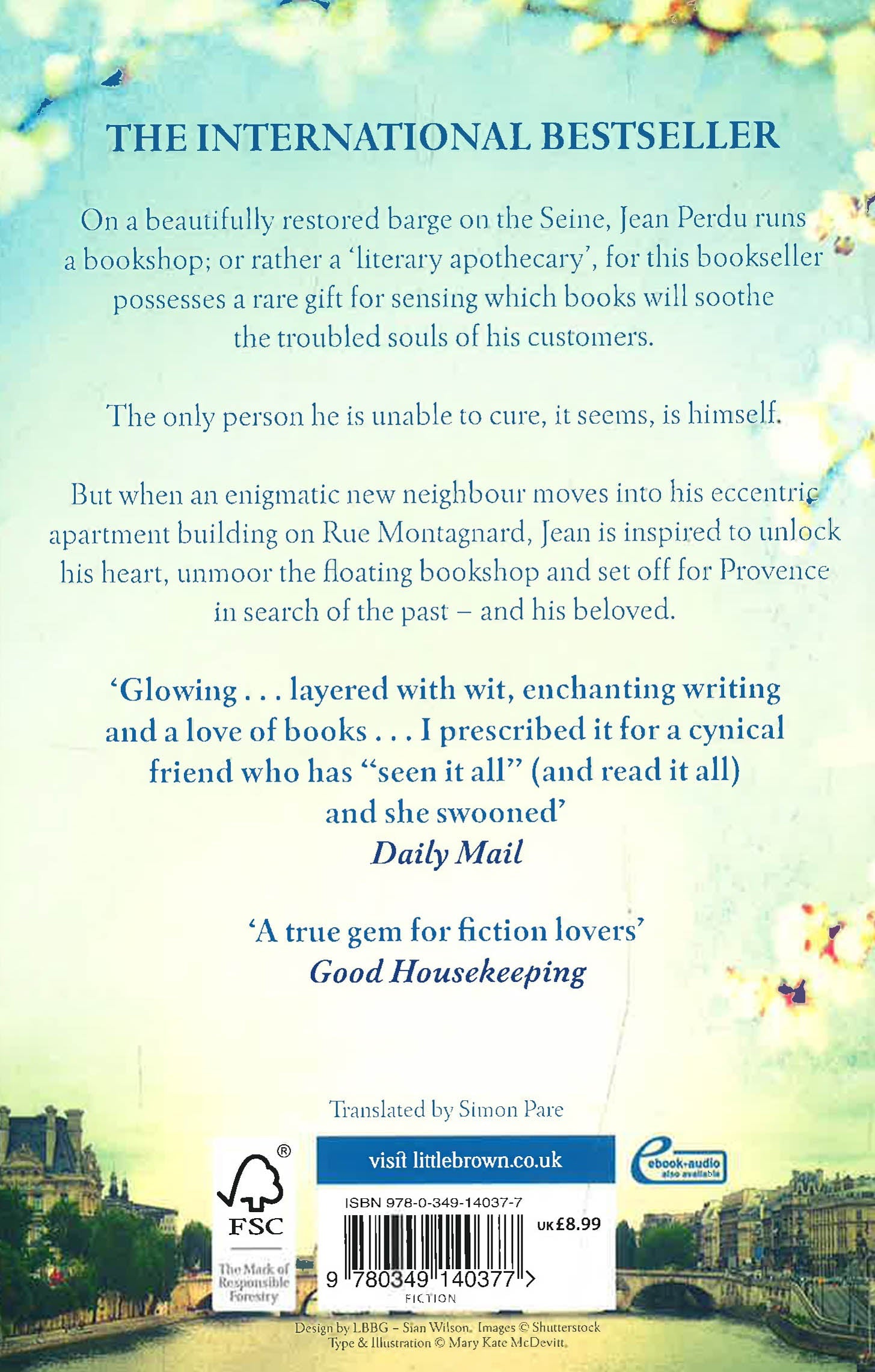 The international bestseller, translated from the German by Simon Pare. On a beautifully restored barge on the Seine, Jean Perdu runs a bookshop or rather a 'literary apothecary', for this bookseller possesses a rare gift for sensing which books will soothe the troubled souls of his customers. The only person he is unable to cure, it seems, is himself. He has nursed a broken heart ever since the night, twenty-one years ago, when the love of his life fled Paris, leaving behind a handwritten letter that he has never dared read. His memories and his love have been gathering dust until now. The arrival of an enigmatic new neighbour in his eccentric apartment building on Rue Montagnard inspires Jean to unlock his heart, unmoor the floating bookshop and set off for Provence, in search of the past and his beloved.