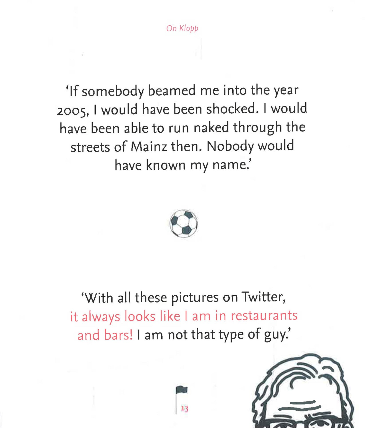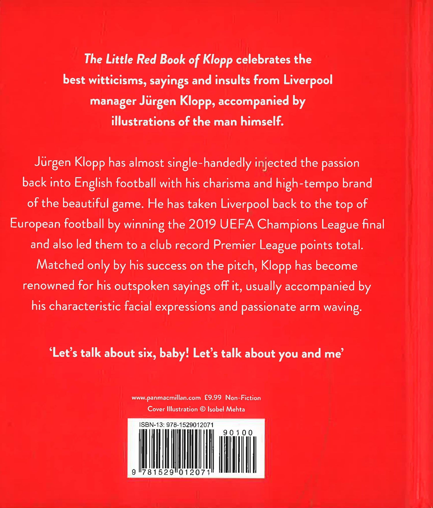 The Little Red Book of Klopp celebrates the best witticisms, sayings, and insults from Liverpool manager Jürgen Klopp, accompanied by illustrations of the great man himself.