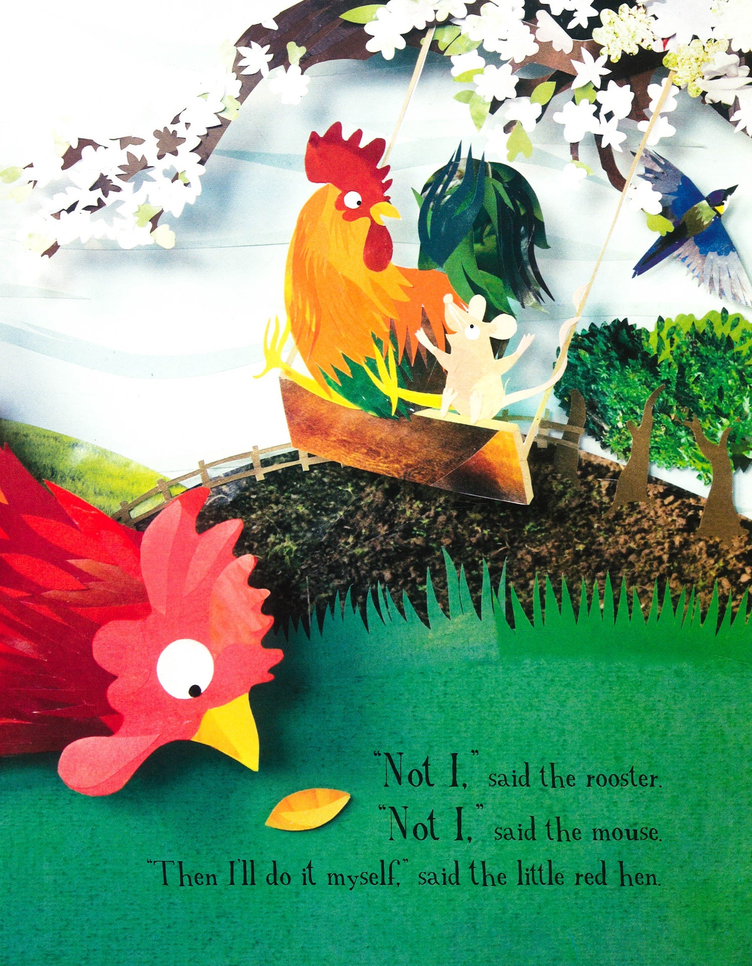The lazy rooster and mischievous mouse can't be bothered to help the Little Red Hen tend her ear of wheat. They can't be bothered to help her take it to the miller either, or bake it into bread. But when her loaf of warm, fragrant bread is ready, the Little Red Hen is not at all inclined to share it with them. The rooster and the mouse soon mend their ways!