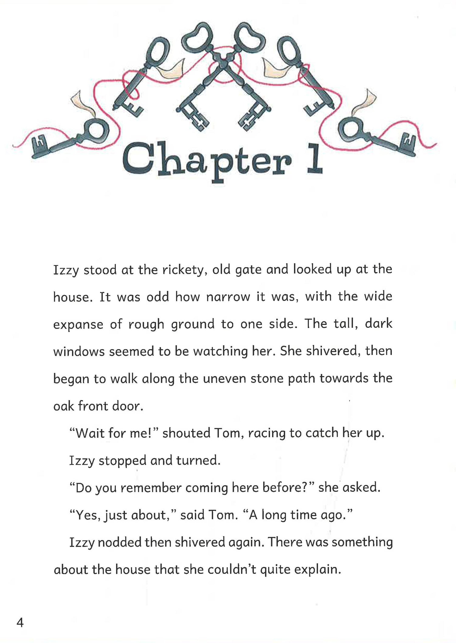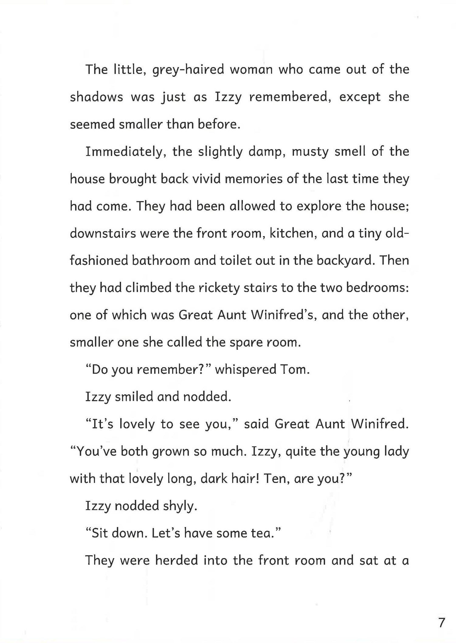 Izzy and Tom are visiting their Great Aunt Winifred at her spooky, old house. After Winifred admits that the house is actually haunted, Izzy and Tom are determined to find the ghost... But when they find a mysterious locked door, their investigations take a spine-tingling turn! Read on for a chilling tale that's sure to give you the creeps!