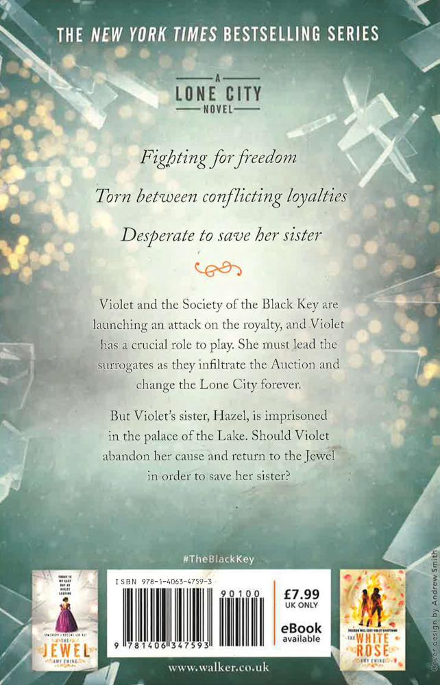 The stakes are higher than ever in the third book in Amy Ewing's Lone City trilogy. Revolution is brewing, and for Violet the fight has become even more personal - her sister has been kidnapped by the Duchess of the Lake.The third book in Amy Ewing's New York Times bestselling Lone City trilogy, The Black Key is perfect for fans of The Selection and Red Queen. Violet and the Society of the Black Key are preparing to launch an attack on the royalty, and Violet has a crucial role to play. She must lead the surrogates as they infiltrate the Auction and break down the walls of the Lone City. But with her sister, Hazel, imprisoned in the palace of the Lake, Violet is torn. In order to save her sister, she must abandon her cause and her friends and return to the Jewel.