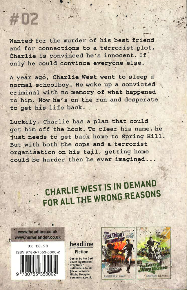 Unable to remember the last year of his life Charlie is faced with the horror of being accused of murdering his best friend and being involved in a terrorist plot. Now he must dodge both the cops and a terrorist organisation to make his way home and clear his name...