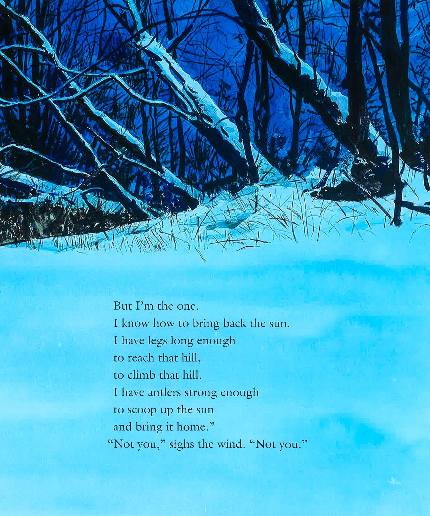 It is the longest night of the year, and the snow lies deep. All through the forest, animals long for dawn's warmth. Strong and clever creatures boast that only they can bring back the sun. But the wind knows better. The wind calls Chickadee, whose simple song wakes the sun. In this lyrical story from Marion Dane Bauer with breathtaking watercolors by Ted Lewin, it will take a tiny and gentle creature to summon a new day.