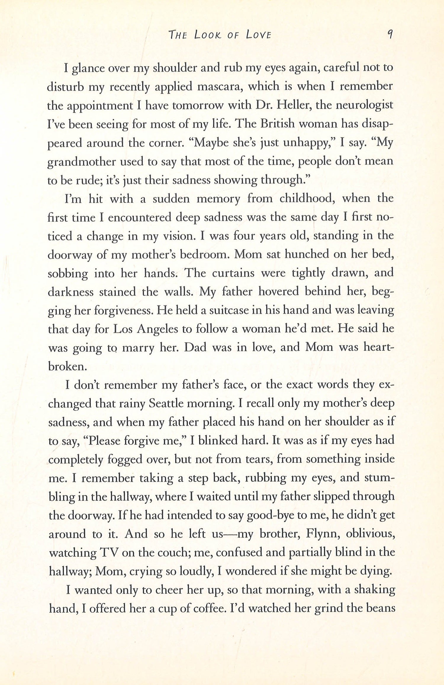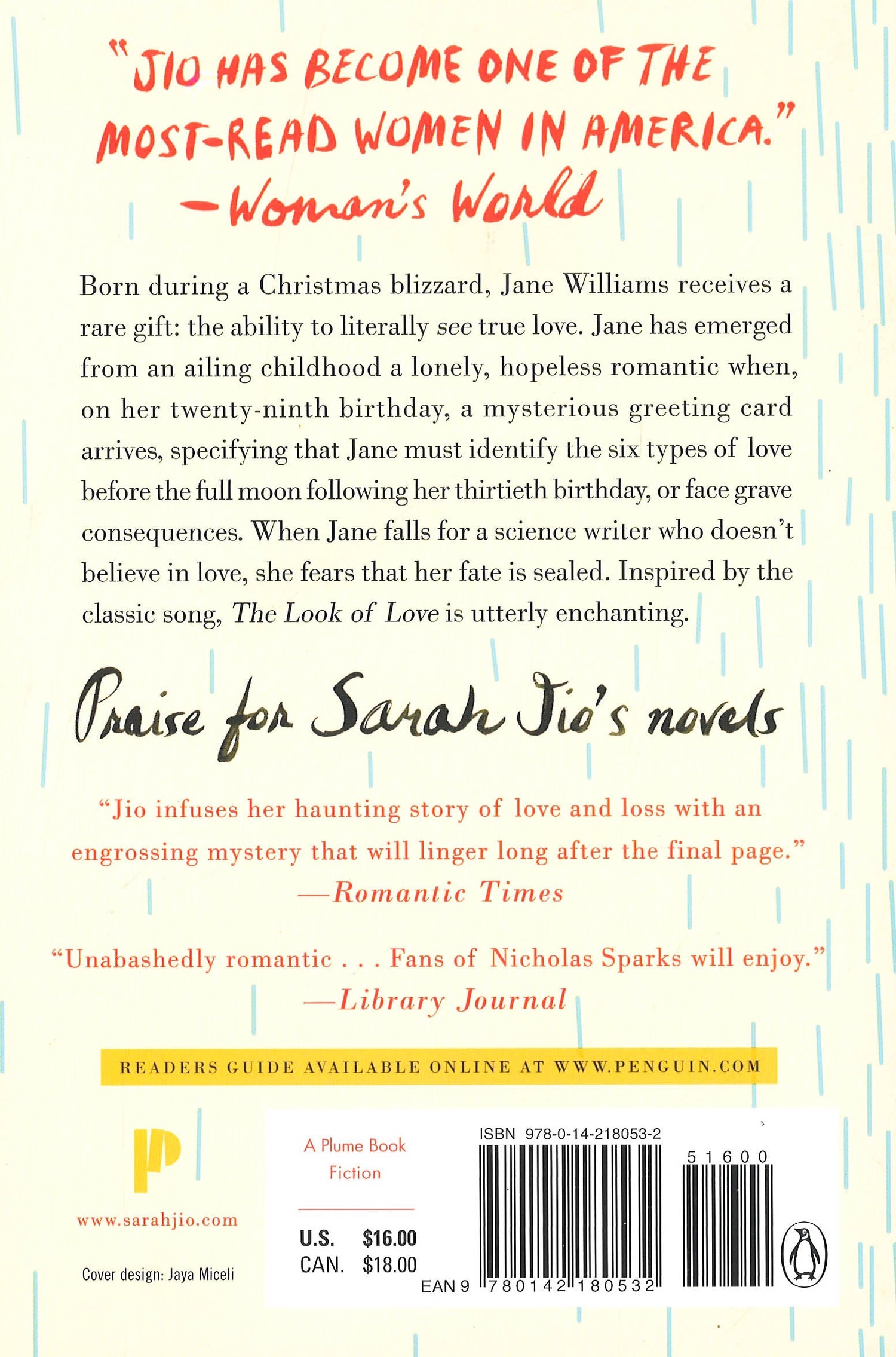 Born during a Christmas blizzard, Jane Williams receives a rare gift: the ability to see true love. Jane has emerged from an ailing childhood a lonely, hopeless romantic when, on her twenty-ninth birthday, a mysterious greeting card arrives, specifying that Jane must identify the six types of love before the full moon following her thirtieth birthday, or face grave consequences. When Jane falls for a science writer who doesn t believe in love, she fears that her fate is sealed. Inspired by the classic song, The Look of Love is utterly enchanting.