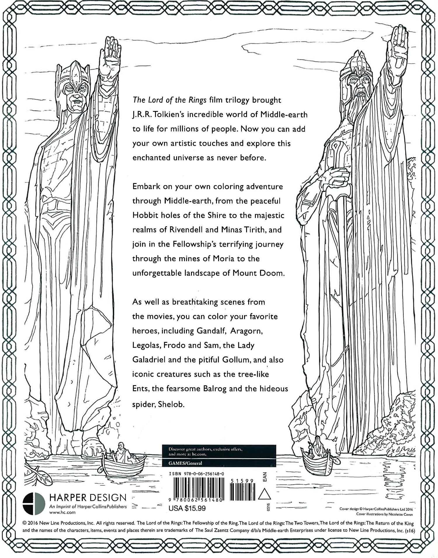 Experience your favorite characters and enchanted scenes from one of the most famous fantasy worlds every created - Middle-earth - in a brilliant new way with this first authorized coloring book based on the Academy Award-winning epic motion picture trilogy The Lord of the Rings directed by Peter Jackson.