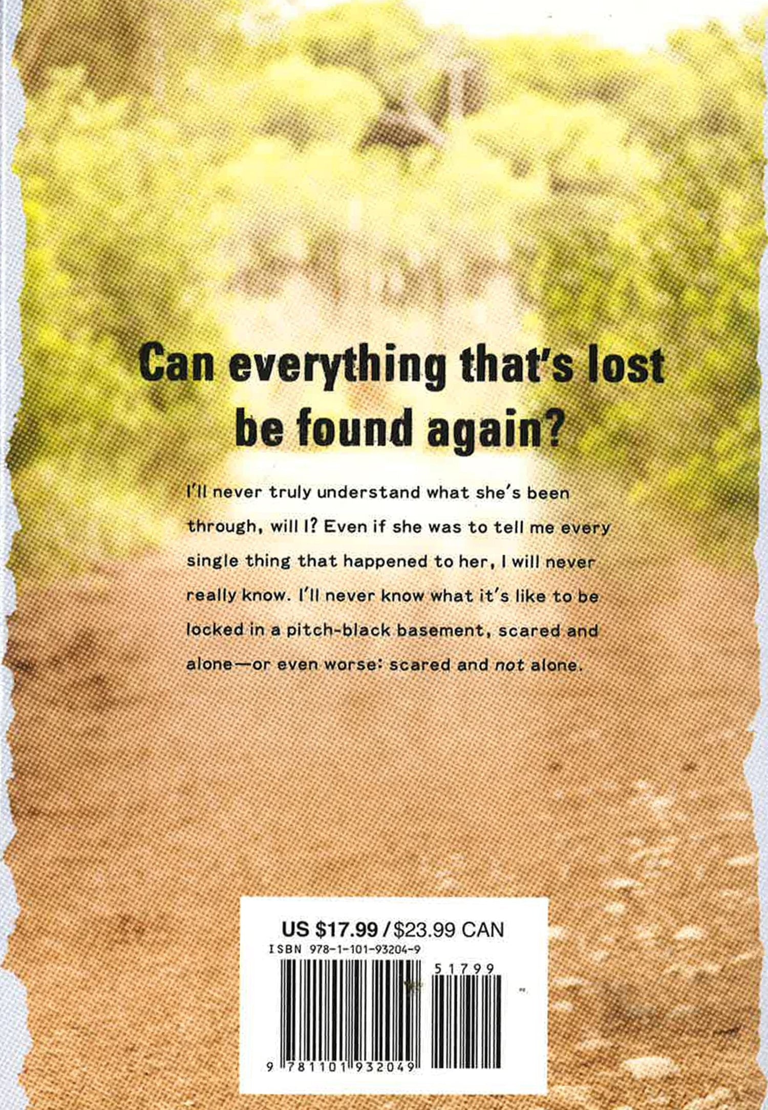 Fans of Lucy Christopher?s Stolen, Caroline B. Cooney?s The Face on the Milk Carton, and Natasha Preston?s The Cellar will be captivated by this twisty psychological thriller about an abducted girl who finally returns home to her family?but is she really who she claims to be? THE LOST When six-year-old Laurel Logan was abducted, the only witness was her younger sister, Faith. Since then, Faith?s childhood has revolved around her sister?s disappearance?from her parents? broken marriage and the constant media attention, to dealing with so-called friends who only ever want to talk about her missing sister. THE FOUND Now, thirteen years later, a young woman is found in the front yard of the Logans? old house, disoriented and clutching the teddy bear Laurel was last seen with. Can her sister finally be back? Faith always dreamed of her sister coming home; she just never believed it would happen. But soon a disturbing series of events leaves Faith increasingly isolated from her family and paranoid about her sister?s motives. Before long, Faith begins to wonder if it?s the abduction that?s changed her sister, or if it?s something else. . . .*This book may have remainder mark*