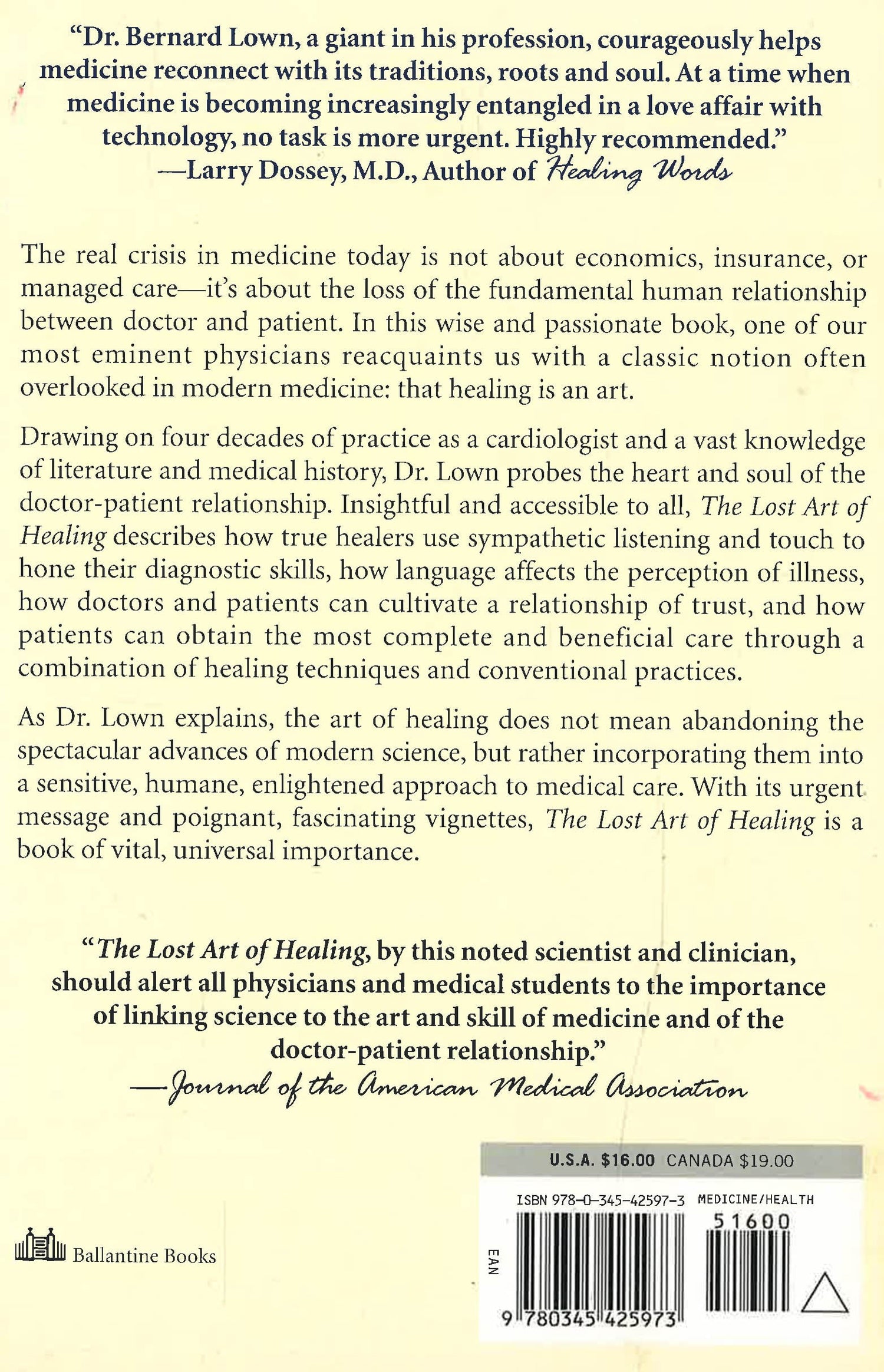 As Dr. Lown explains, the art of healing does not mean abandoning the spectacular advances of modern science, but rather incorporating them into a sensitive, humane, enlightened approach to medical care. With its urgent message and poignant, fascinating vignettes, The Lost Art of Healing is a book of vital, universal importance