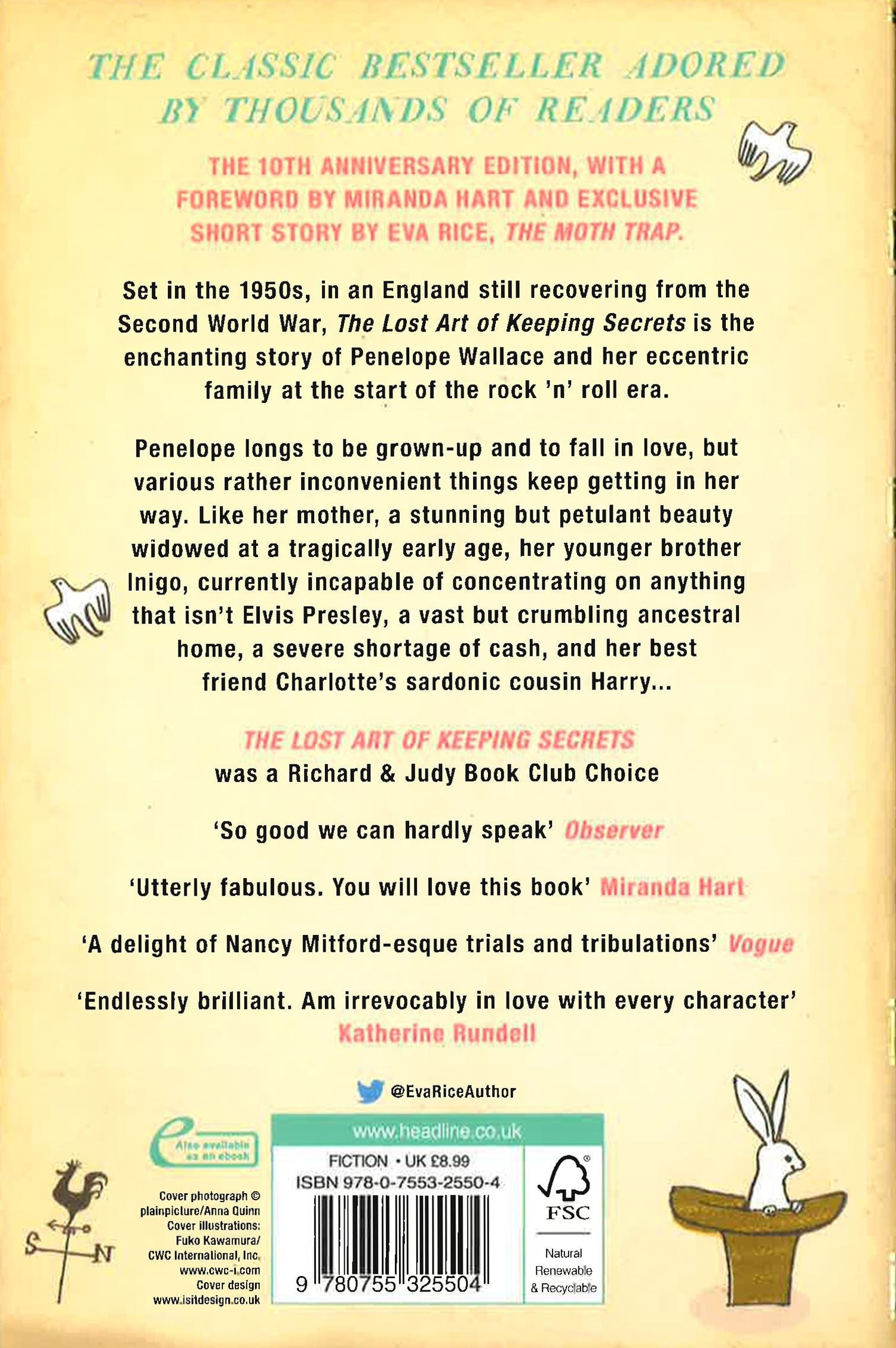 Miranda Hart contributes a fabulous foreword to this beautiful new edition of the beloved bestseller, published to celebrate its ten year anniversary. Hailed a 'modern vintage classic', The Lost Art of Keeping Secrets was a Richard and Judy Book Club Choice. This special edition also includes a brand new exclusive short story from Eva Rice, The Moth Trap, which offers a glimpse into the cocktail party where Penelope's parents, Archie and Talitha, first met.Set in the 1950s, in an England still recovering from the Second World War, this is the enchanting story of Penelope Wallace and her eccentric family at the start of the rock'n'roll era.Penelope longs to be grown-up and to fall in love, but various rather inconvenient things keep getting in her way. Like her mother, a stunning but petulant beauty widowed at a tragically early age, her younger brother Inigo, currently incapable of concentrating on anything that isn't Elvis Presley, a vast but crumbling ancestral home, a severe shortage of cash, and her best friend Charlotte's sardonic cousin Harry...