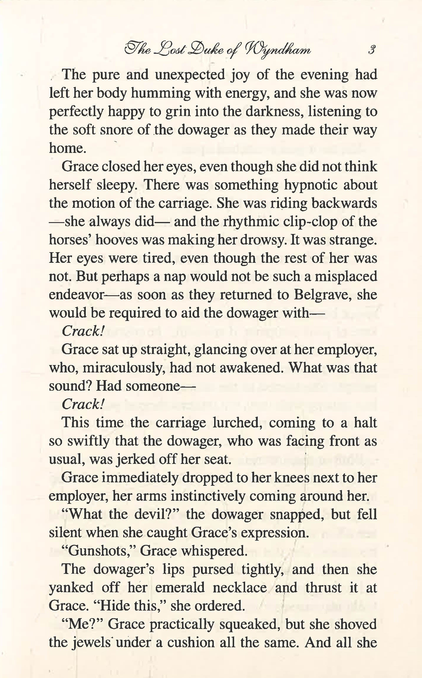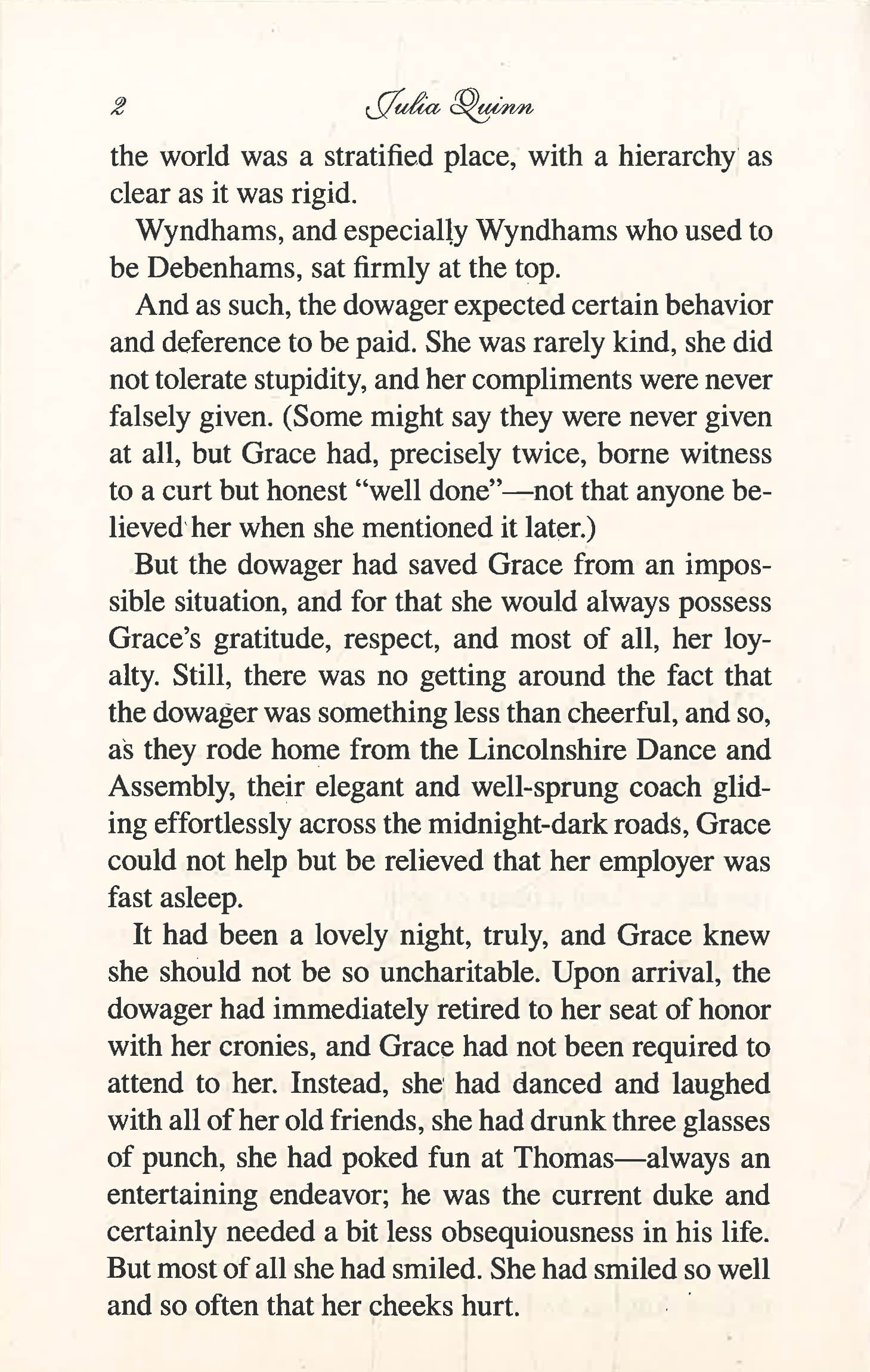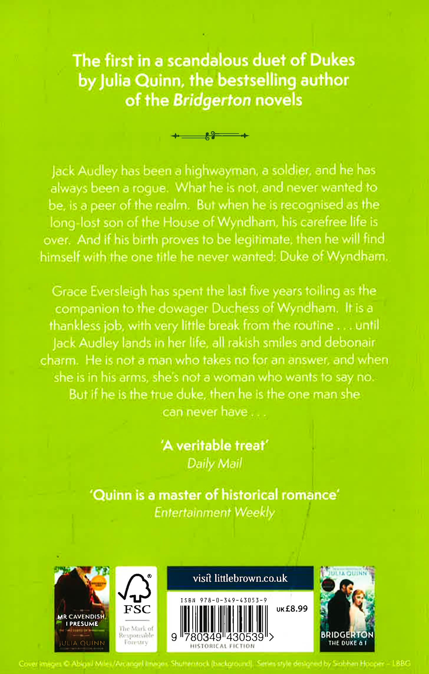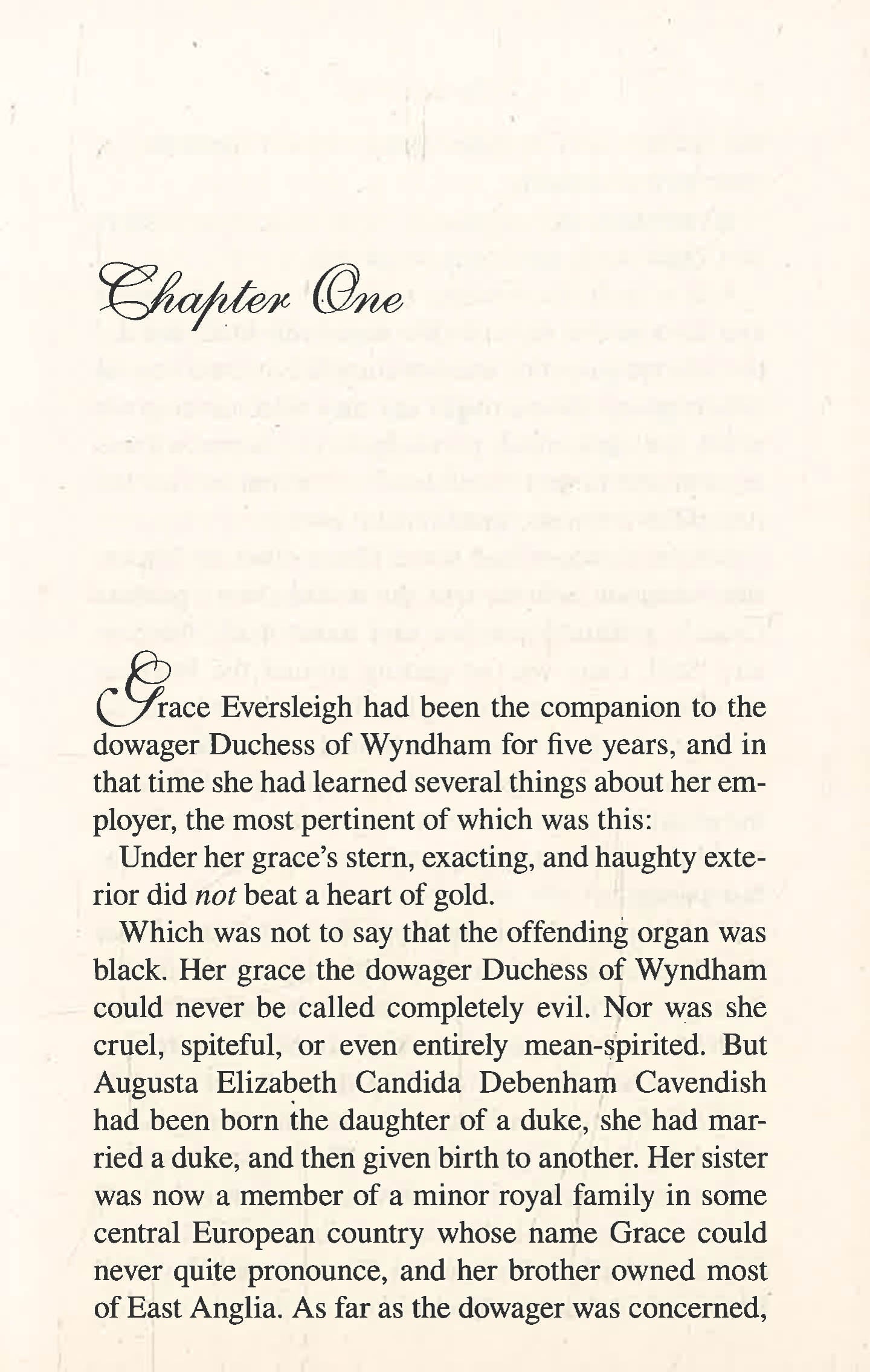 Grace Eversleigh has spent the last five years toiling as the companion to the dowager Duchess of Wyndham. It is a thankless job, with very little break from the routine . . . until Jack Audley lands in her life, all rakish smiles and debonair charm. He is not a man who takes no for an answer, and when she is in his arms, she's not a woman who wants to say no. But if he is the true duke, then he is the one man she can never have . . .
