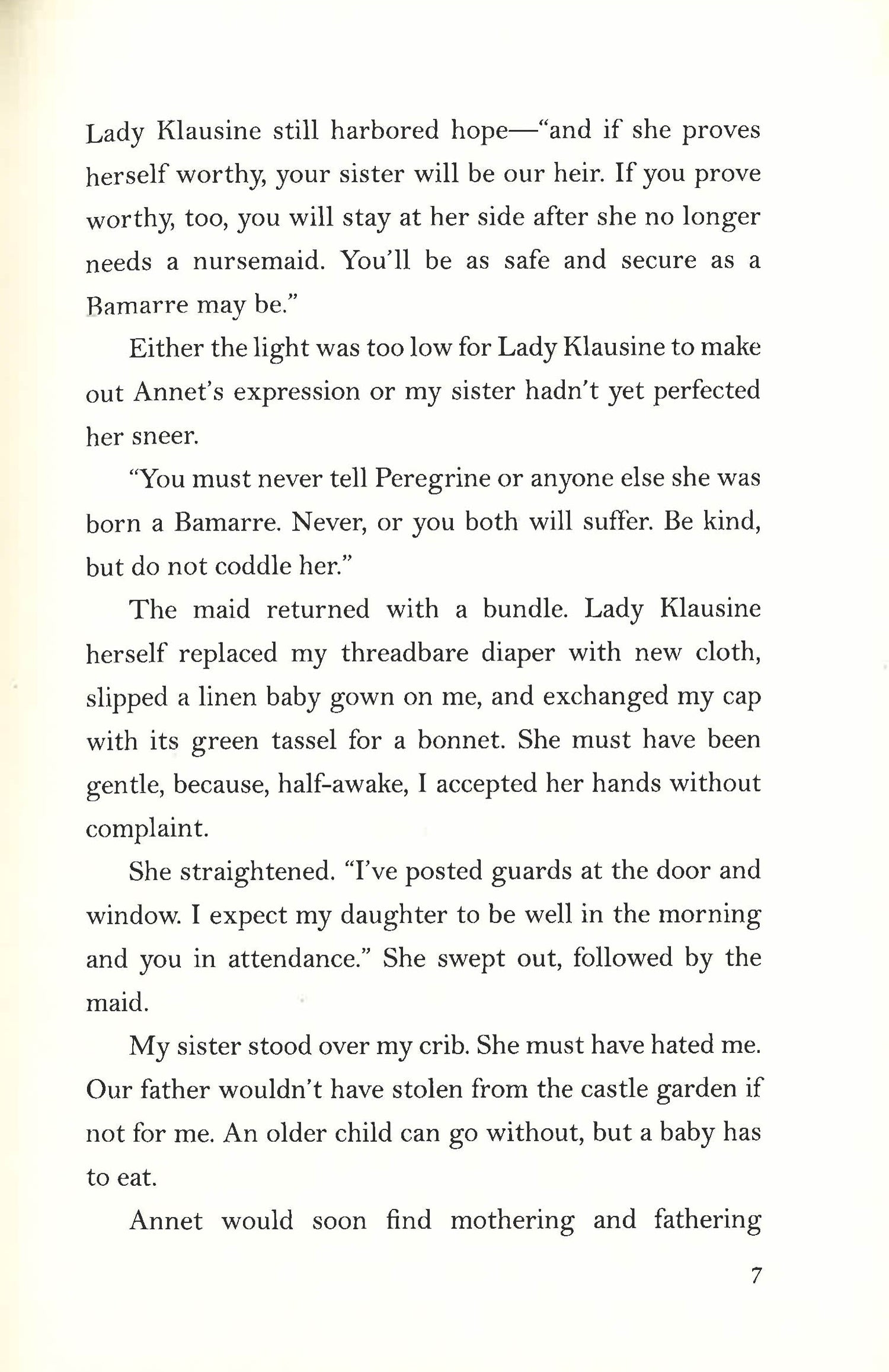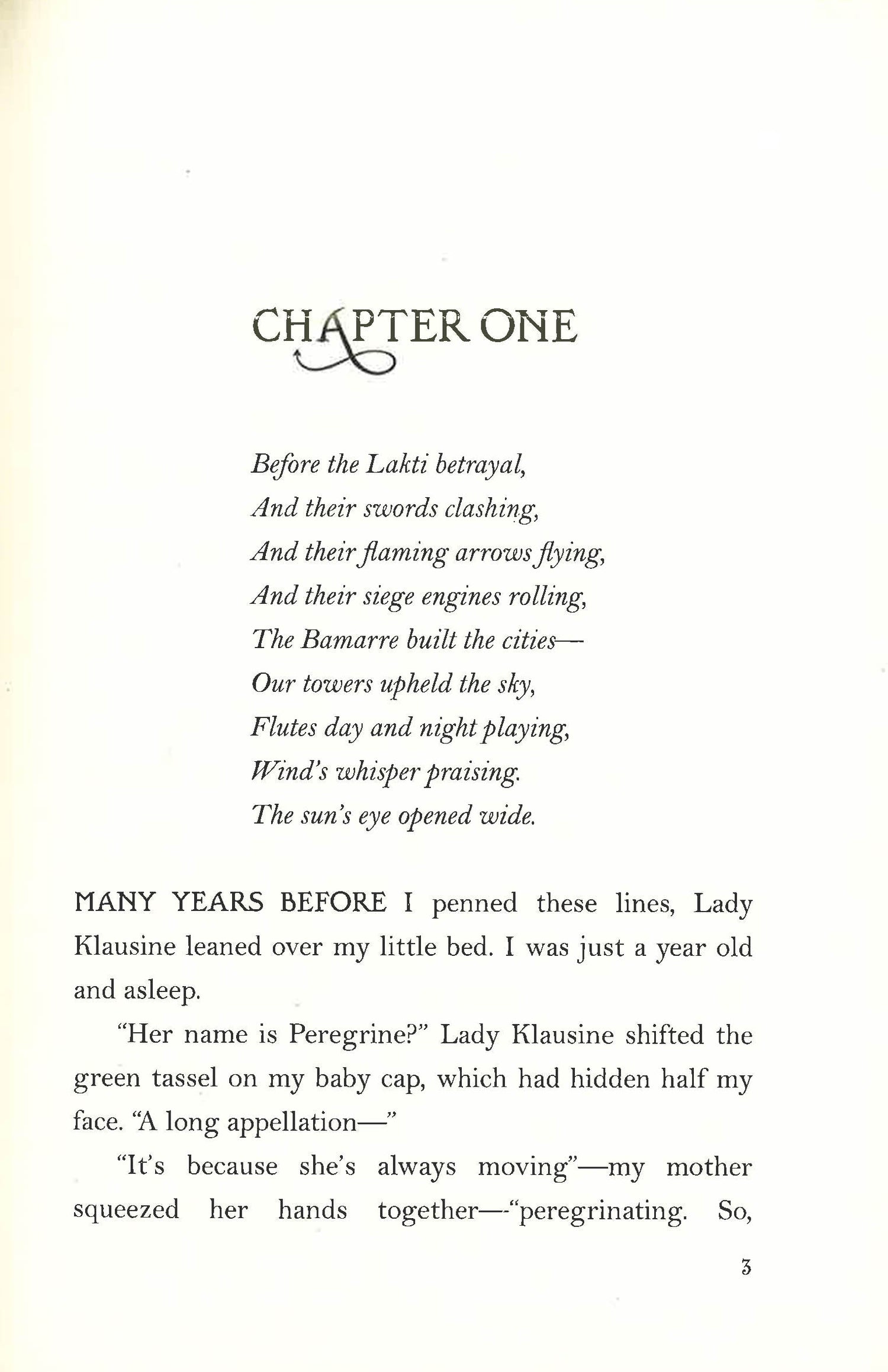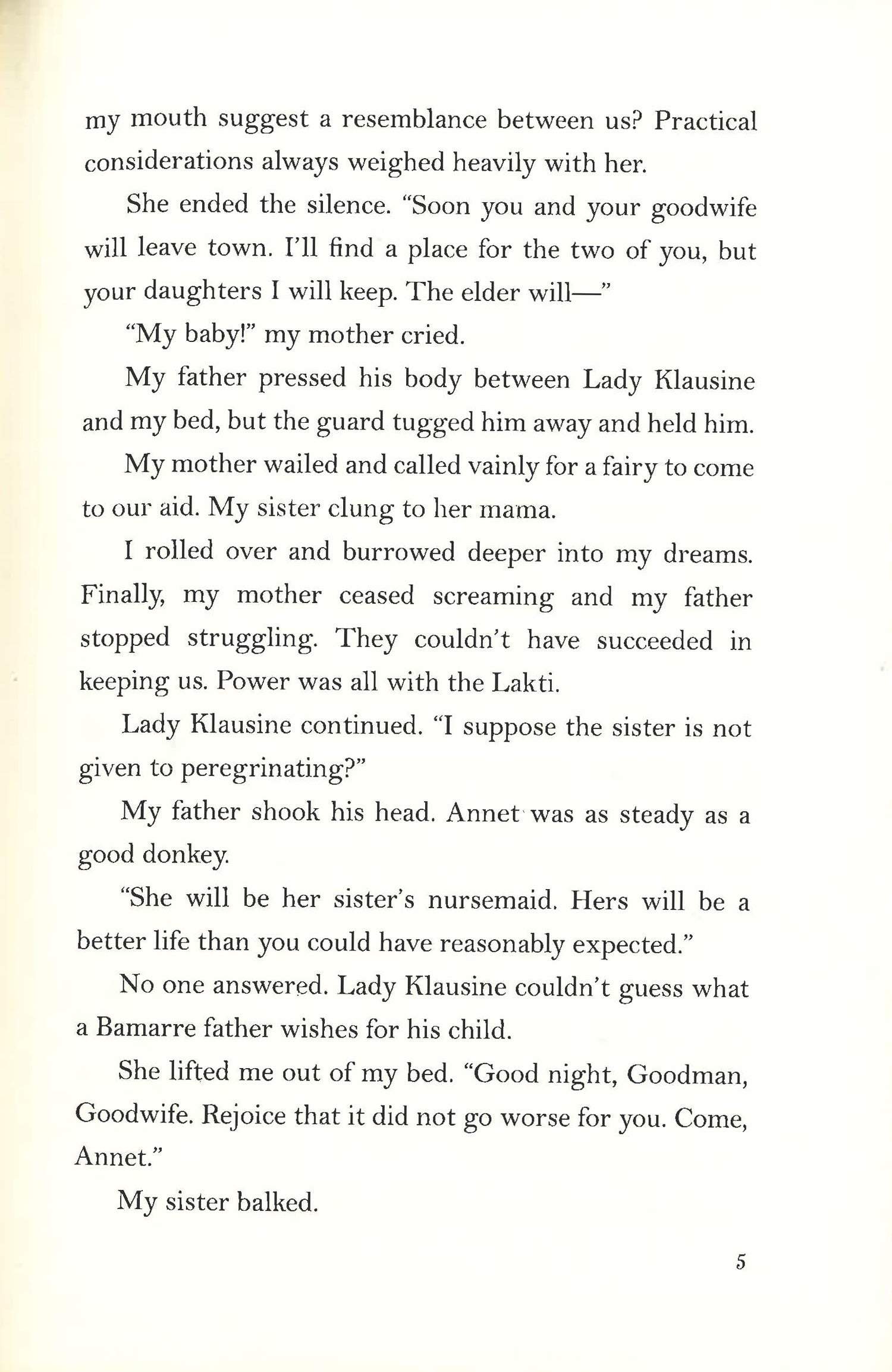 Peregrine strives to live up to the ideal of her people, the Latki - and to impress her parents: affectionate Lord Tove, who despises only the Bamarre, and stern Lady Klausine. Perry runs the fastest, speaks her mind, and doesn?t give much thought to the castle?s Bamarre servants, whom she knows to be weak and cowardly.But just as she?s about to join her father on the front lines, she is visited by the fairy Halina, who reveals that Perry isn?t Latki-born. She is Bamarre. The fairy issues a daunting challenge: against the Lakti power, Perry must free her people from tyranny.