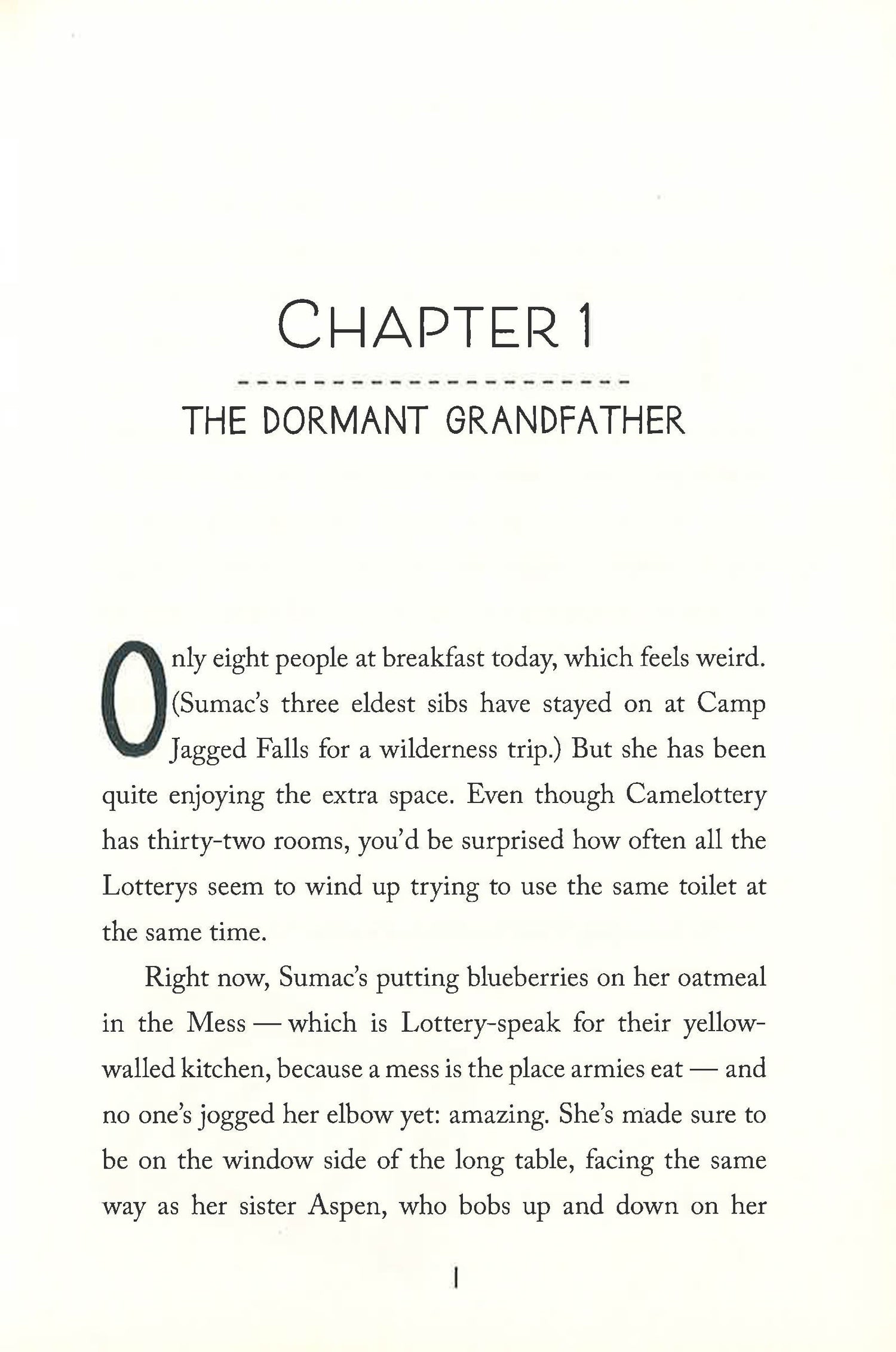 Sumac Lottery is nine years old and the self-proclaimed "good girl" of her (VERY) large, (EXTREMELY) unruly family. And what a family the Lotterys are: four parents, children both adopted and biological, and a menagerie of pets, all living and learning together in a sprawling house called Camelottery. Then one day, the news breaks that one of their grandfathers is suffering from dementia and will be coming to live with them. And not just any grandfather; the long dormant "Grumps," who fell out with his son so long ago that he hasn't been part of any of their lives. Suddenly, everything changes. Sumac has to give up her room to make the newcomer feel at home. She tries to be nice, but prickly Grumps's clearly disapproves of how the Lotterys live: whole grains, strange vegetables, rescue pets, a multicultural household... He's worse than just tough to get along with -- Grumps has got to go! But can Sumac help him find a home where he belongs? *This book may have remainder mark*