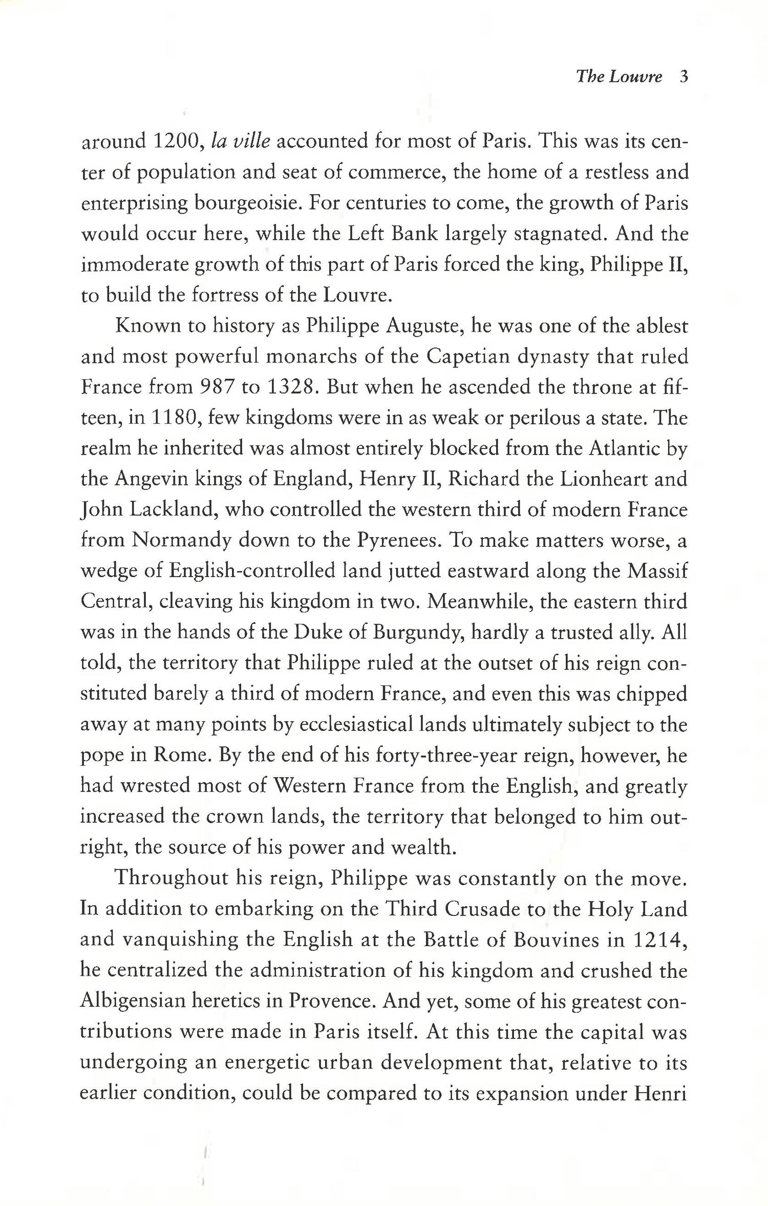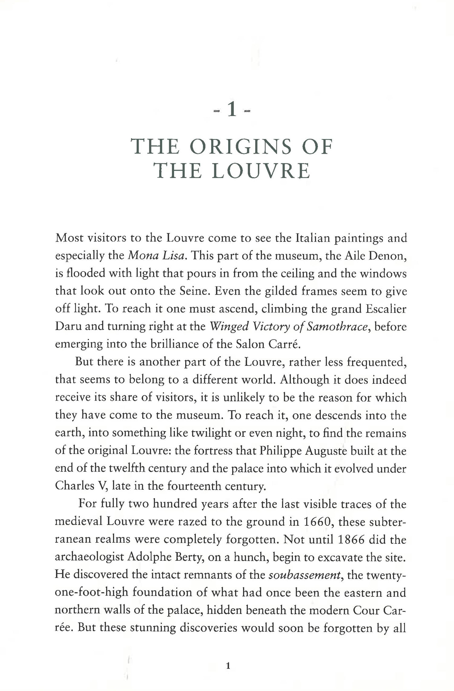 Includes a 16-page full-color insert, featuring images illustrating the history of the Louvre, a full-color endpaper map detailing the Louvre's evolution from fortress to museum, and black-and-white images throughout the narrative.