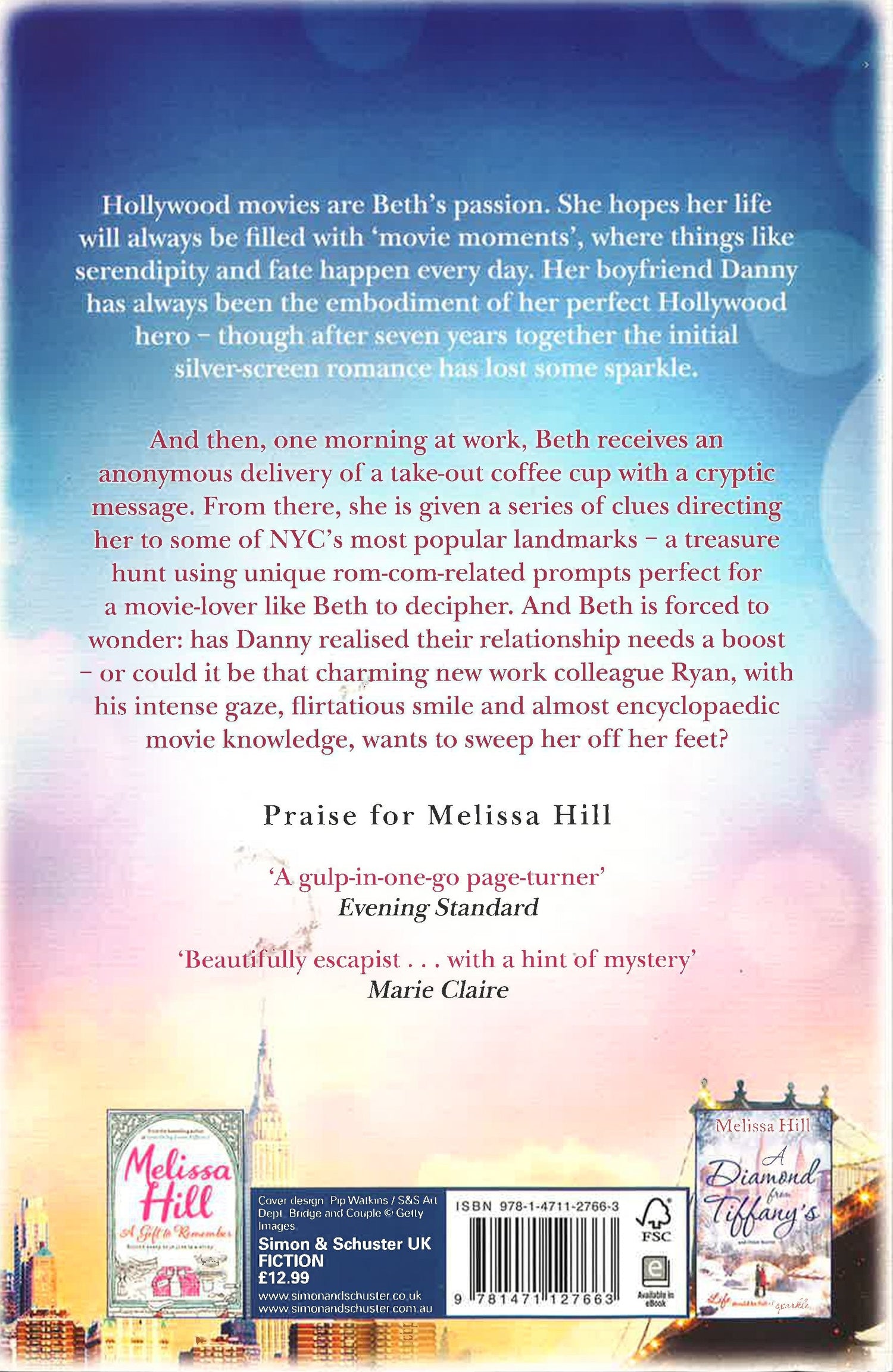 And then, one morning at work, Beth receives an anonymous delivery of a take-out coffee cup with a cryptic message suggesting a meeting at Tiffany's. From there, she is given a series of clues directing her to some of NYC's most popular landmarks - a treasure hunt using unique rom-com-related prompts perfect for a movie-lover like Beth to decipher. And Beth is forced to wonder: has Danny realised their relationship needs a boost - or could it be that charming new work colleague Ryan, with his intense gaze, flirtatious smile and almost encyclopaedic movie knowledge, wants to sweep her off her feet? And how would she feel about taking a chance on a new leading man in her life?