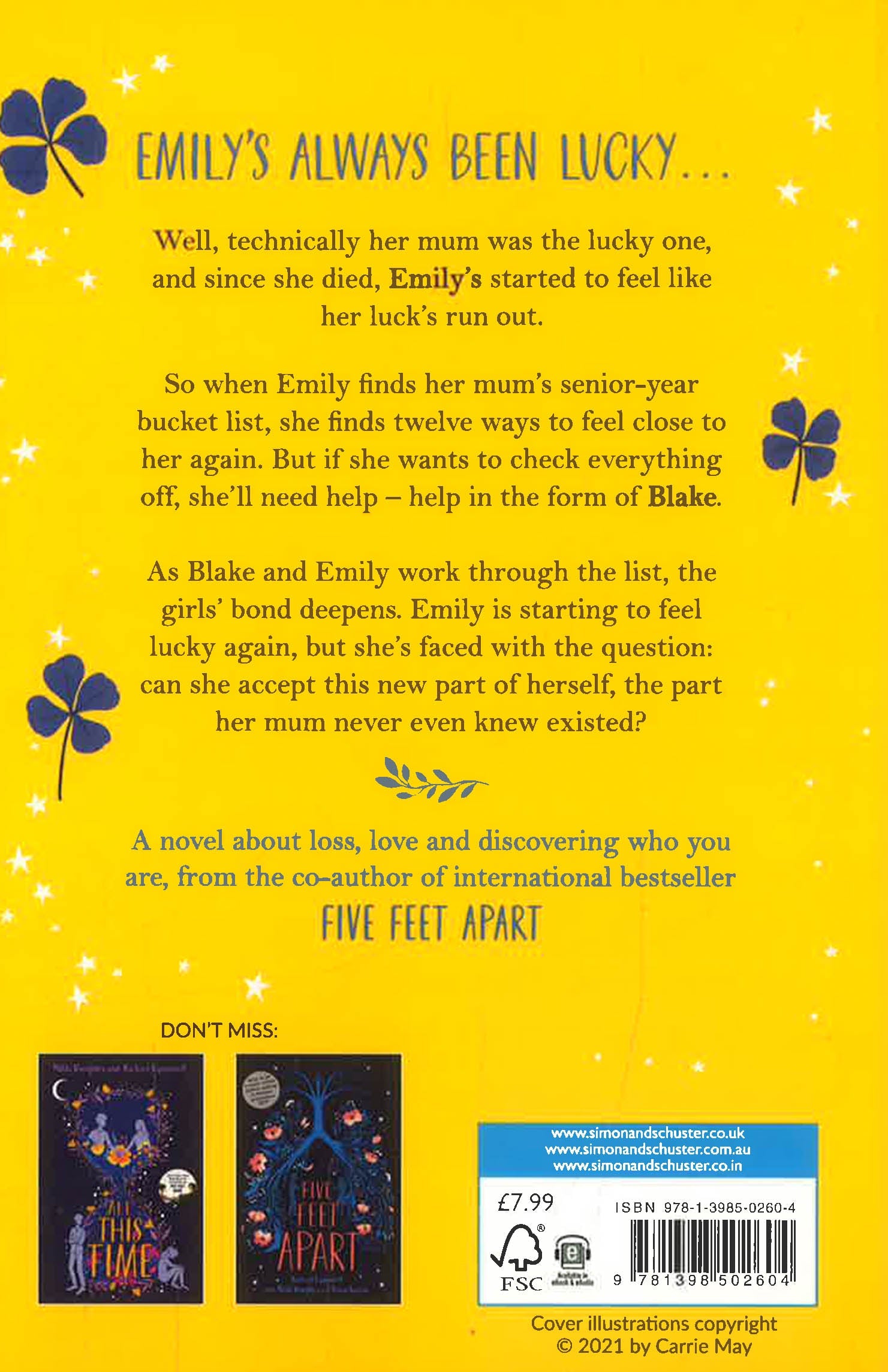 Well, technically her mum was the lucky one, and since she died, Emily’s started to feel like her luck’s run out. So when Emily finds her mum’s senior-year bucket list, she finds twelve ways to feel close to her again. But if she wants to check everything off, she’ll need help – help in the form of Blake.