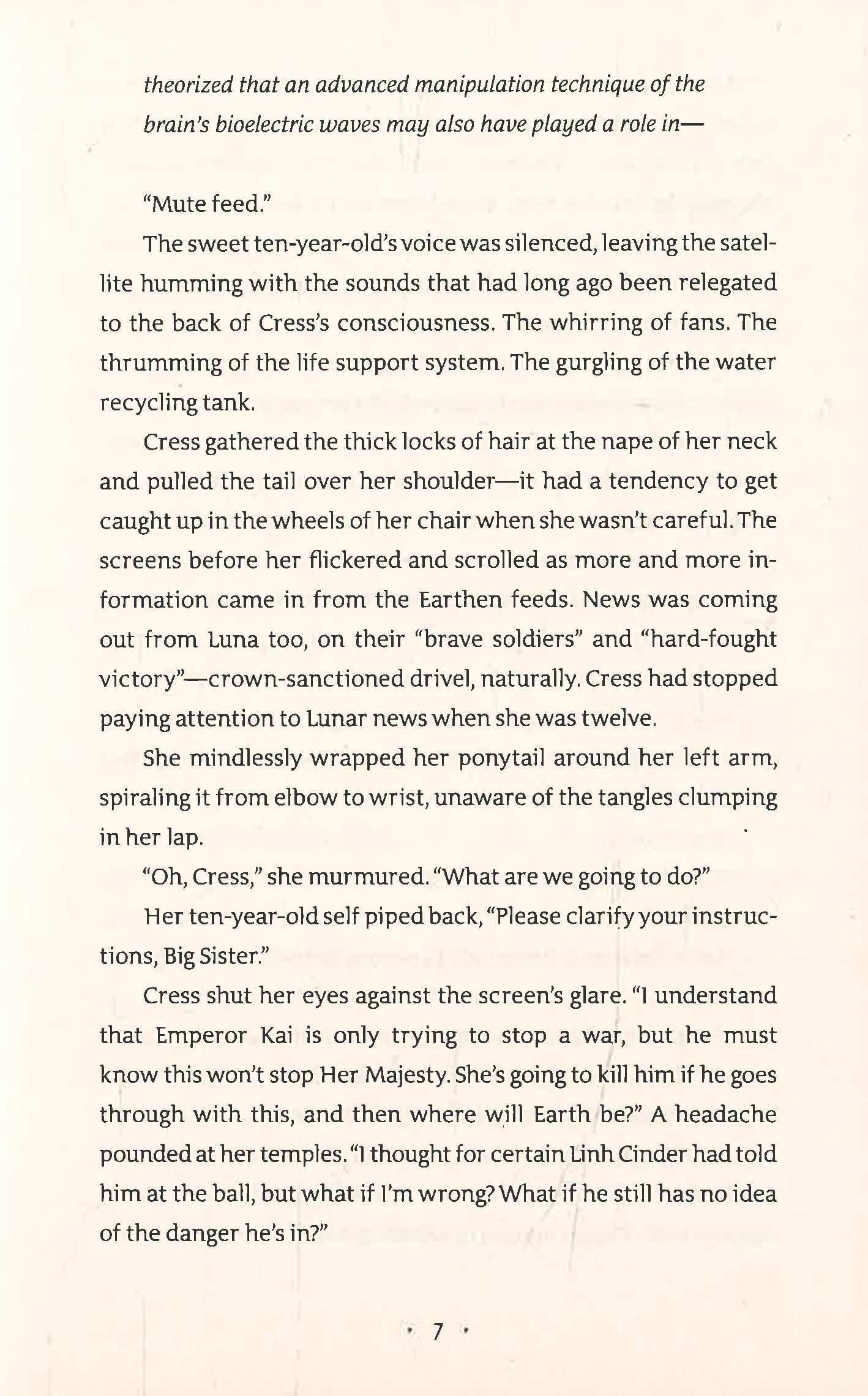 Incarcerated in a satellite, an expert hacker and out to save the world - Cress isn't your usual damsel in distress.