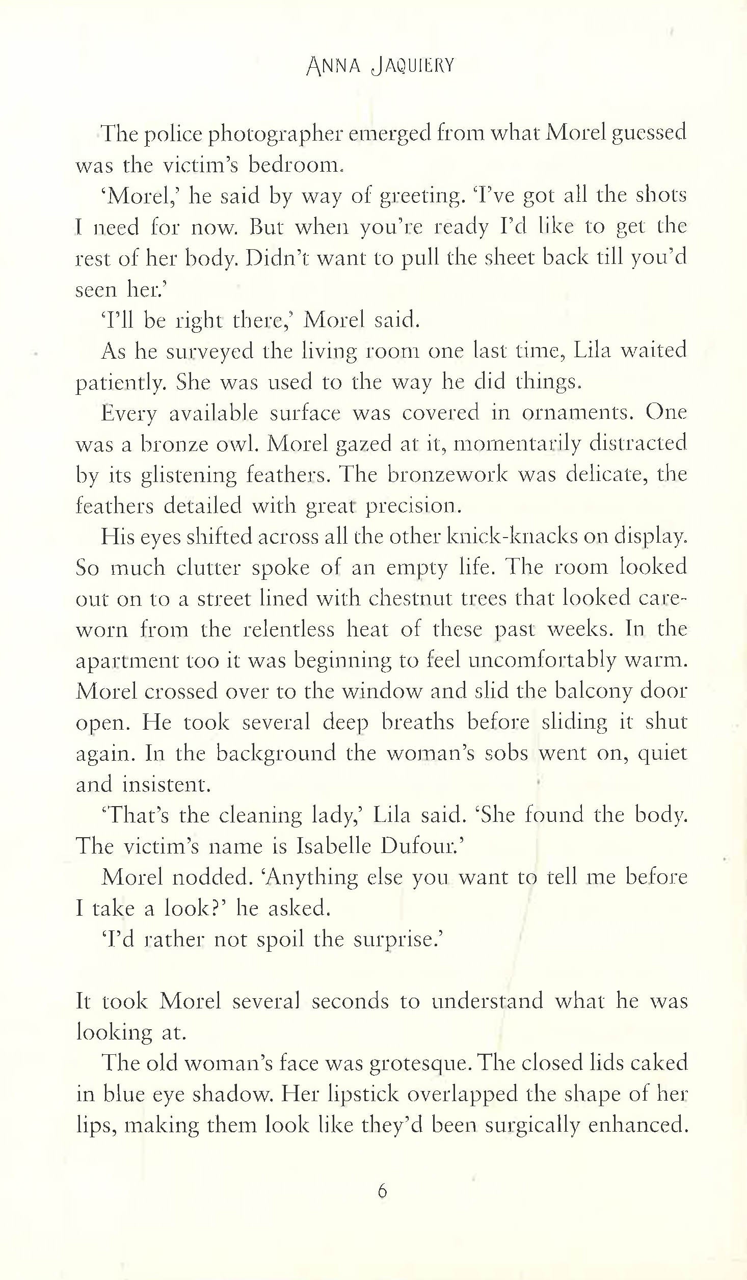 The first instalment in a stunning debut crime series, set in Paris and featuring Chief Inspector Serge Morel At night Armand lay in bed with a sadness in his heart that ballooned until there was room for nothing else. He thought with horror of the lying-down room . . . Paris; in the stifling August heat, Commandant Serge Morel is called to a disturbing crime scene. An elderly woman has been murdered to the soundtrack of Faure's Requiem, her body then grotesquely displayed. At first this strange case seems to offer few clues; and Morel has problems of his own. His father - always a great force in his life - is beginning to succumb to senility; and he is unsettled by the reappearance of the beautiful Mathilde, the woman he once loved. Only origami can help calm the detective and focus his thoughts on this troubling crime. As the investigation progresses, the key suspects to emerge are a middle-aged man and a mute teenage boy who have been delivering religious pamphlets in the city's suburbs. But as more elderly ladies are targeted, Morel will find his enquiries leading him back into the past, from the French countryside to Soviet Russia - and to two young boys with the most terrible of stories to tell . . . An evocative, gripping crime novel with an aching heart: The Lying-Down Room is the stunning first novel in Anna Jaquiery's Commandant Morel series; perfect for fans of Michael Dibdin and Donna Leon.