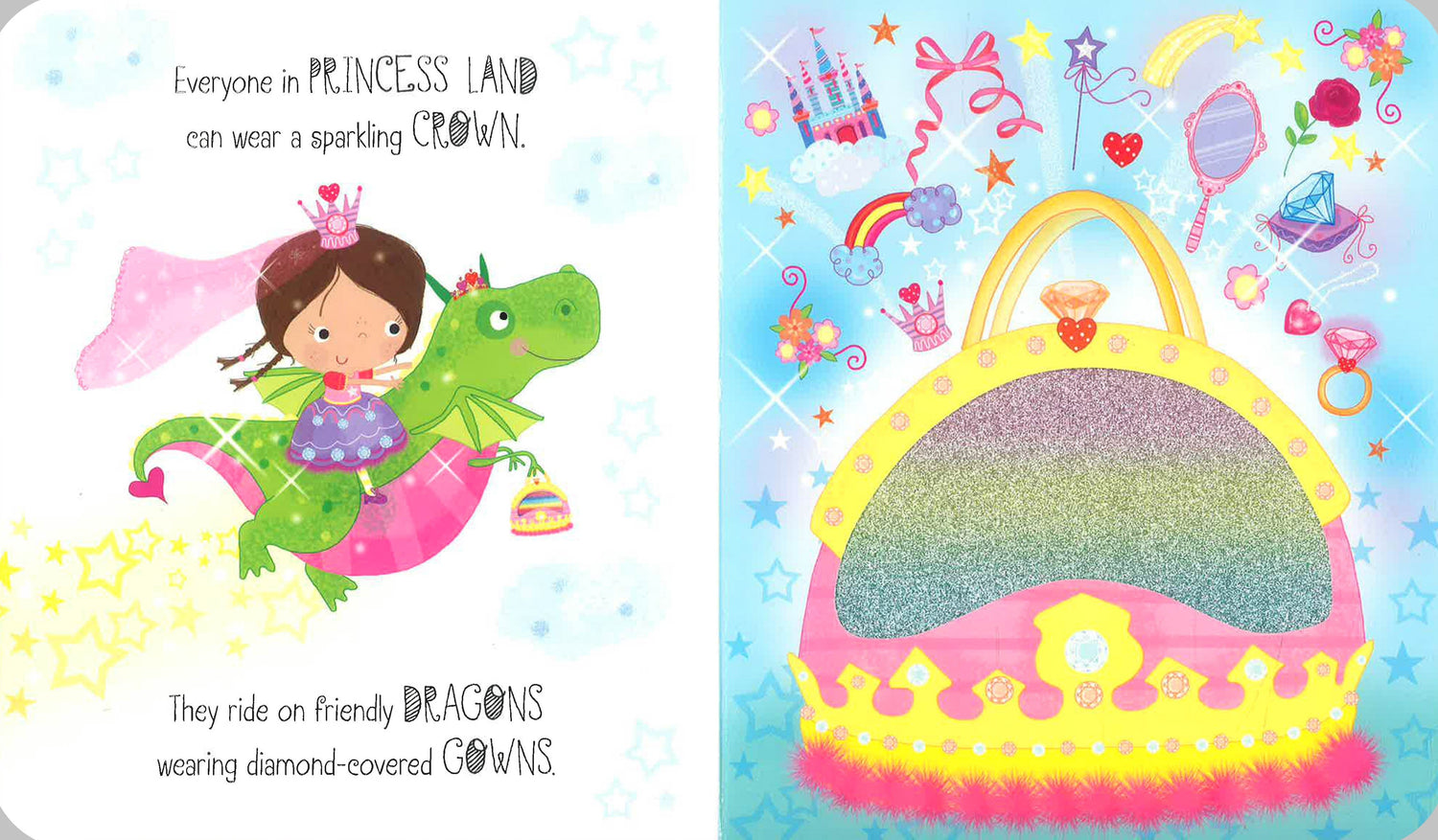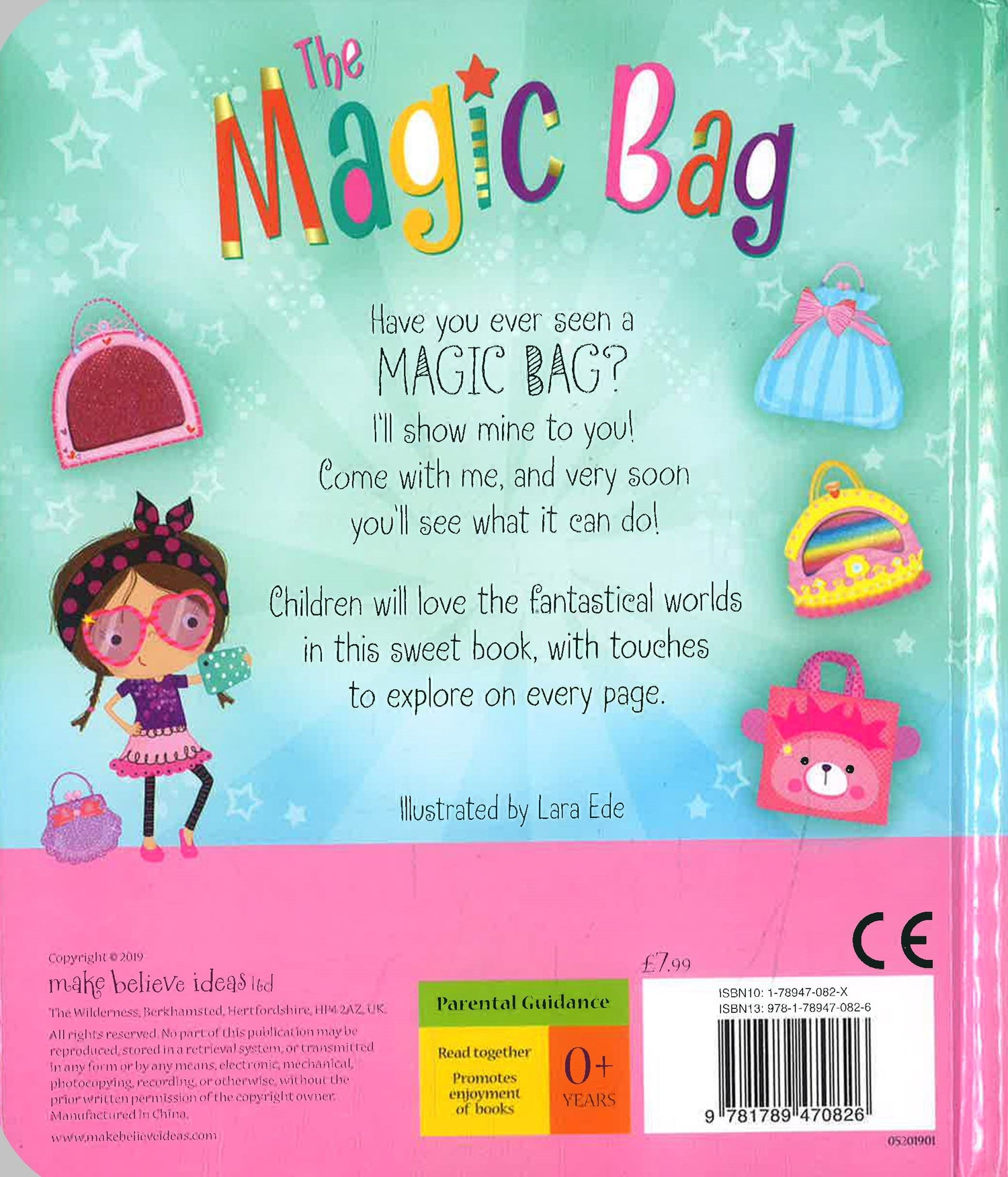 What will you find in the magic bag today With rhyming text and tactile things to explore on every spread, this beautiful book encourages children to enter a magical world full of fountains of candy and mountains of cuddly toys. The pages are sturdy enough to withstand any enthusiastic turning and the simple touches will enchant little ones. It's perfect for sharing.