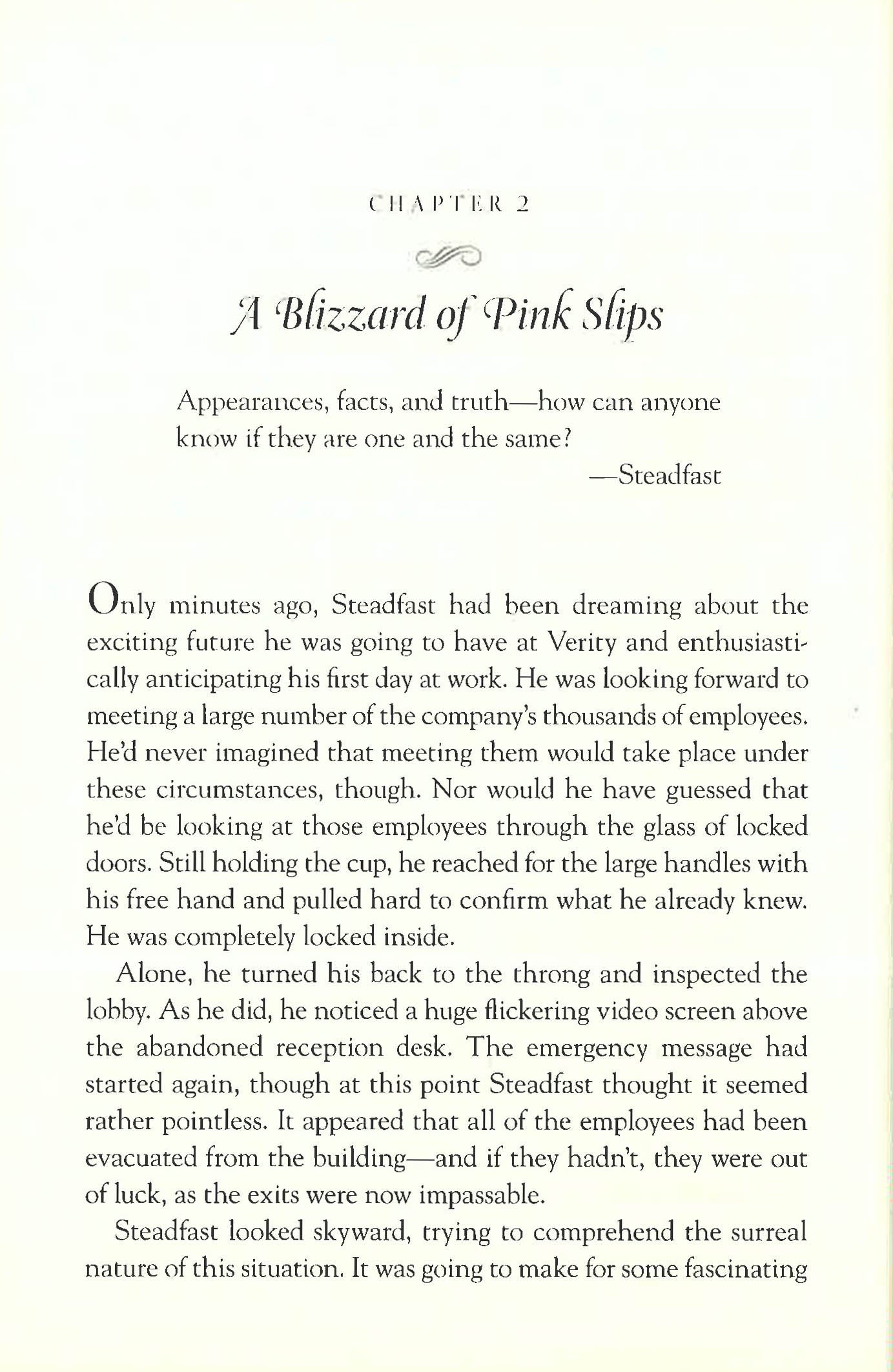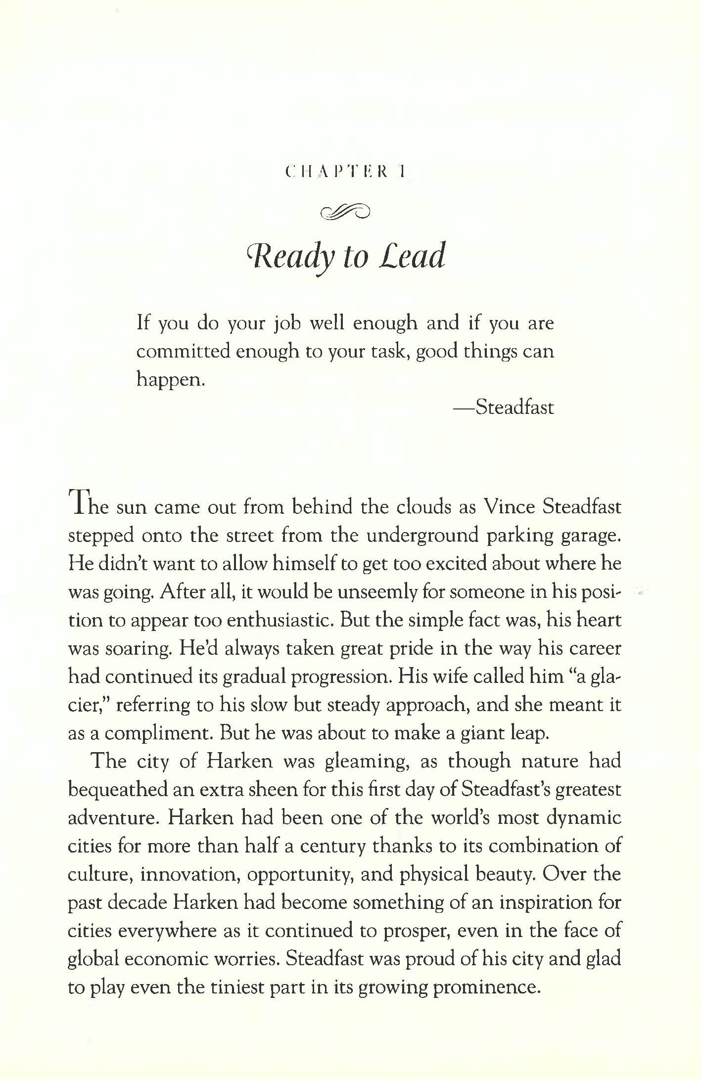 Vince Steadfast is the newly named CEO of the iconic glassworks manufacturer, Verity Glassworks. The firm's artistic glory days are in the past and recent management and financial turmoil have thrown the company's future in jeopardy. The task for Steadfast is to keep his bearings, confront his fears and weaknesses and complete a quest for the very soul of the company. Along the way, Steadfast encounters a motley but talented group of employees - from a mysterious elevator operator to the company historian to an elfin designer - who join him on the quest. They must learn to believe in one and other and to believe in the company they have nearly given up on, if they have any chance at all in succeeding. As they search together for the Treasure Beyond All Price, Steadfast discovers that only by filling his glass cup (a priceless gift from his mentor) with leadership actions based on universal values can he and his new team begin to steer the company into the future.