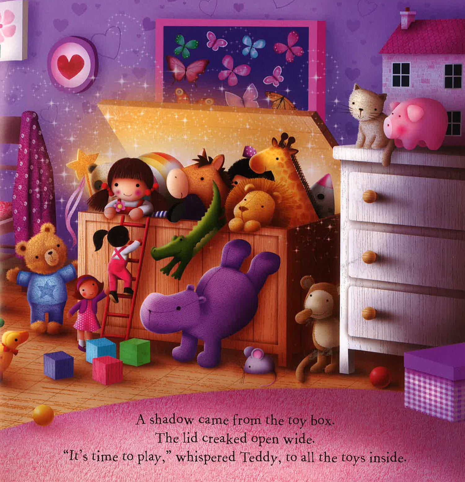 It's midnight and Teddy and the toys are very excited to climb out of the toy bos, but just what are they up to?
