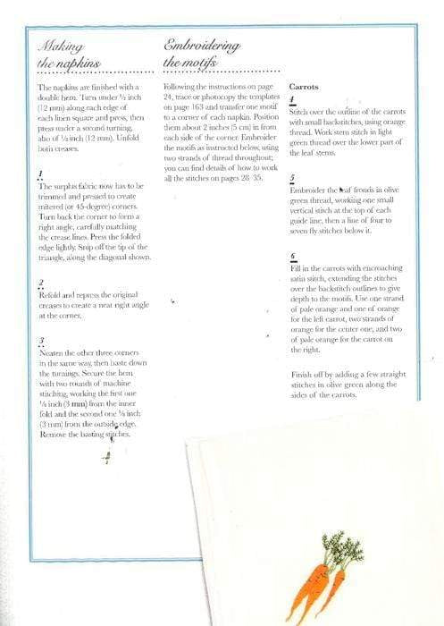 From bed linens and tablecloths to book covers and monograms, The Maison Sajou Sewing Book presents twenty embroidery projects designed to bring refined French style into your home. With straightforward step sequences, patterns, and templates, even the most novice sewer will find pleasure in the delicate embroidery of monograms, pointelle borders, and drawn threadwork. While the sophisticated design of these projects recall a time when embroidery was an everyday activity for many women, even the most intricate will take hours, rather than days.