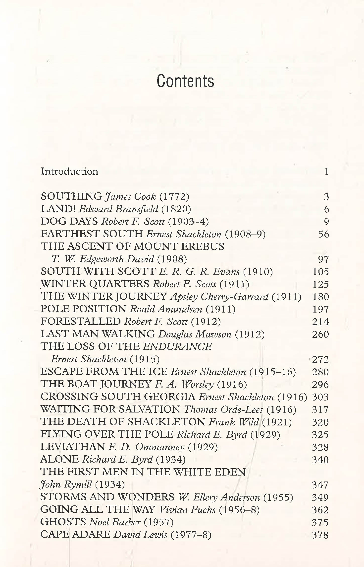 This collection of compelling eye-witness accounts showcases the very best writing on the Antarctic, from Ernest Shackleton on the loss of the Endurance to Lynne Cox on her epic, icy swim in 2002. Includes 35 first-hand accounts of men and women challenging one of the Earths last true wildernesses, encompassing both legendary tales of heroism and shocking contemporary accounts of the impact of global warming on the only undeveloped continent.